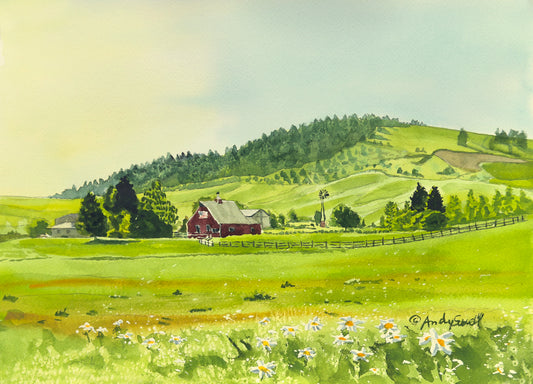 "Country Patriot" - 10"x14" Original watercolor, framed in 14x18
