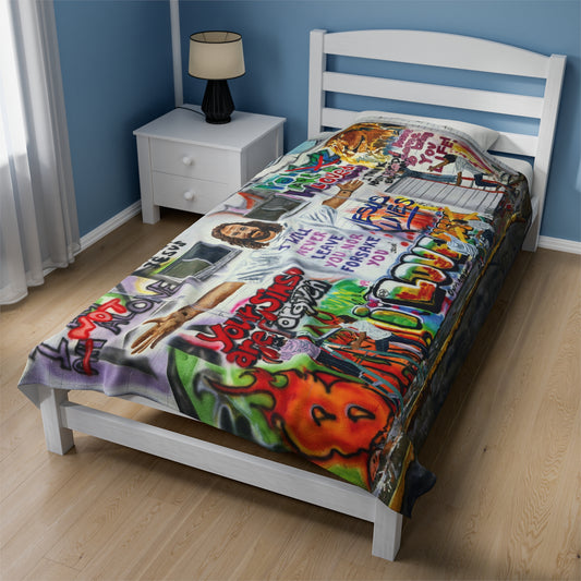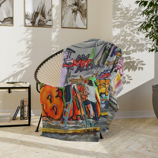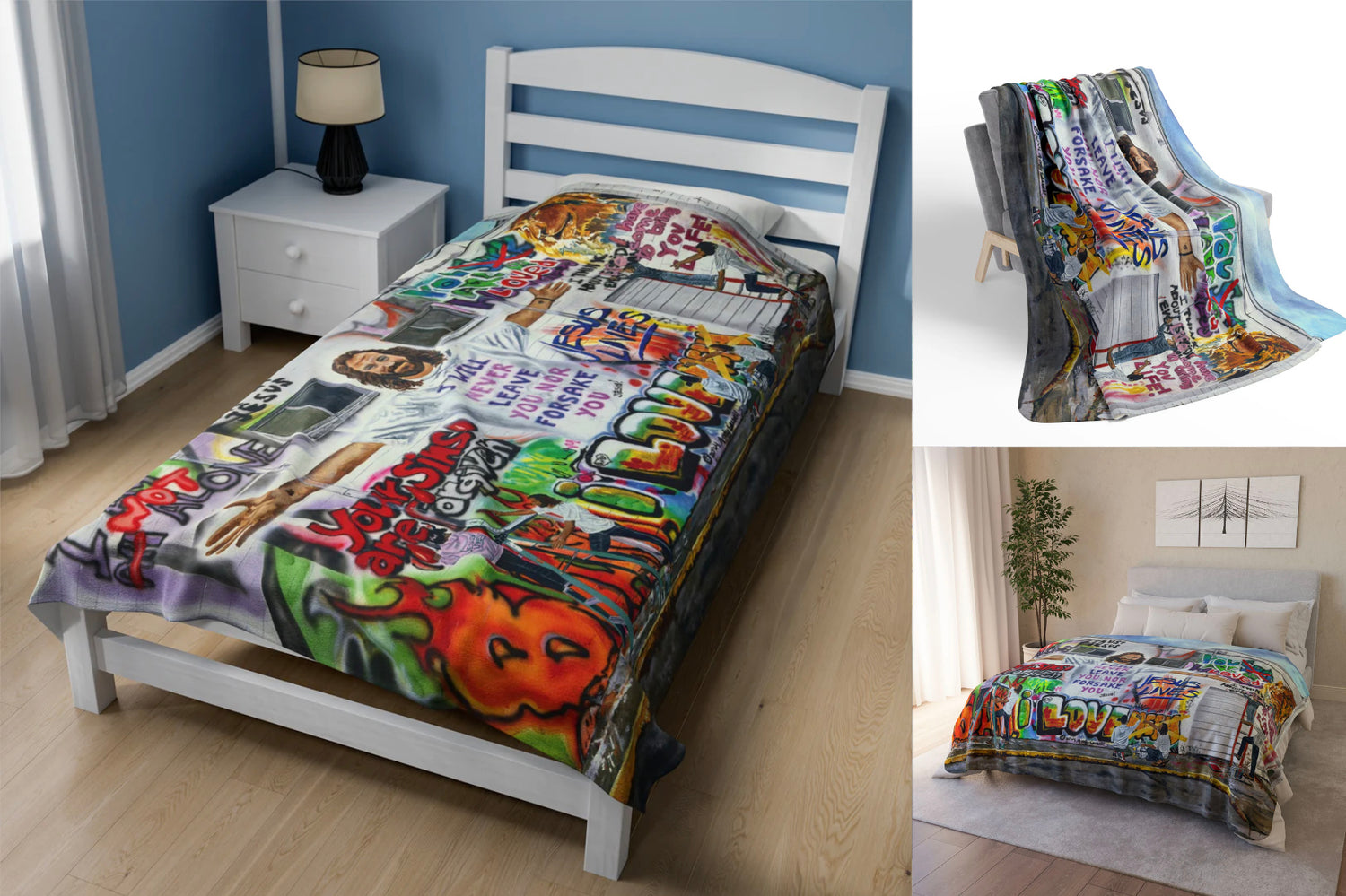 Sherpa Blanket - 'Painting Graffiti with Jesus' by Andy - Cozy Home Decor or Gift