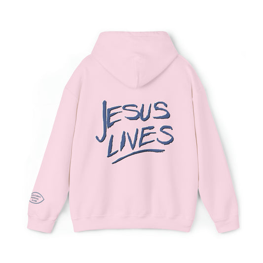 "Jesus Lives" on back Hooded Sweatshirt with arm logo