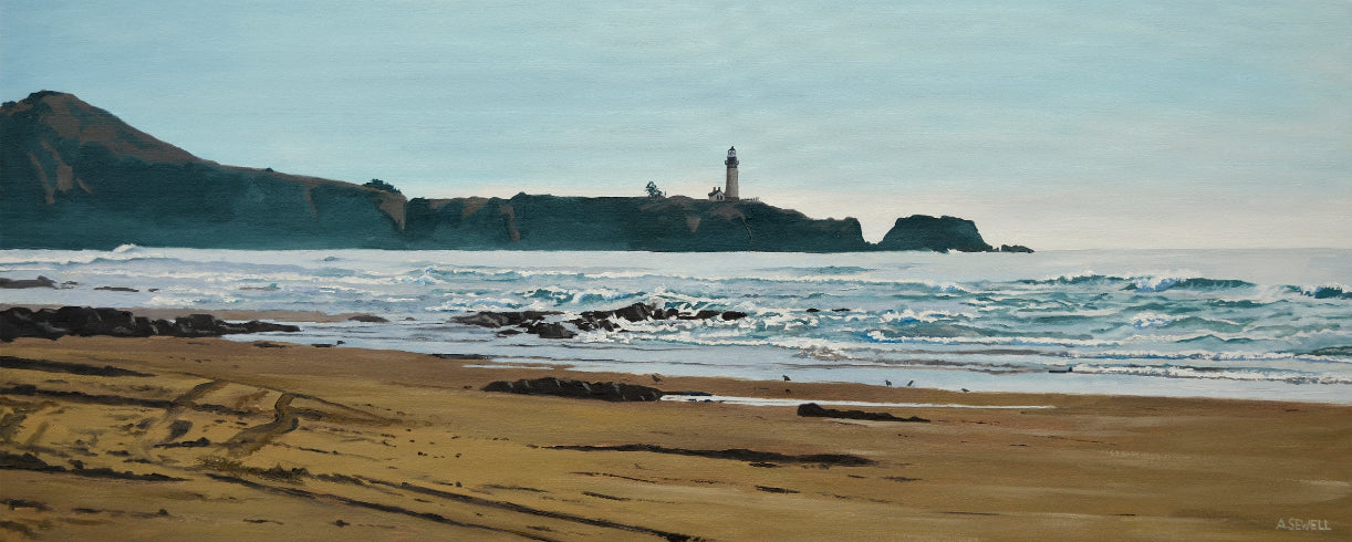 Title: "A Beach for Walking" - Original oil on canvas painting or signed edition Giclee reprod. from a view of a lighthouse on the Oregon coast,