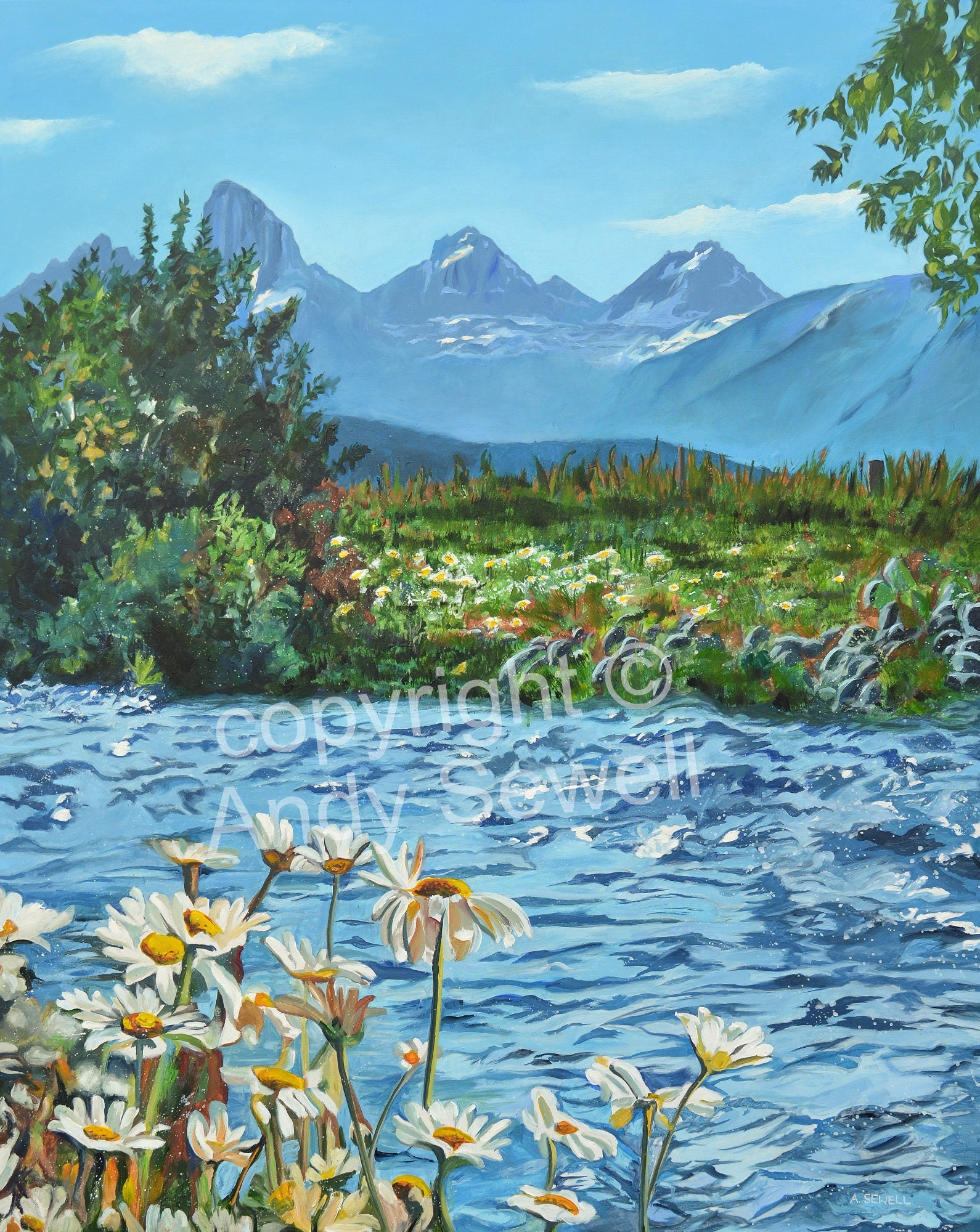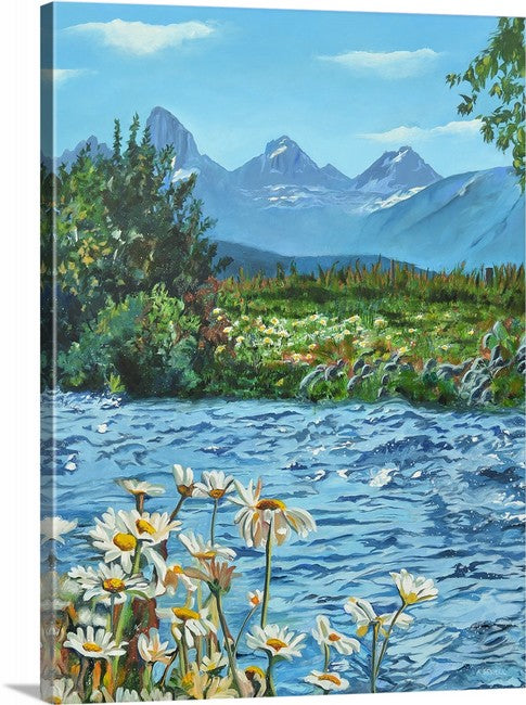 "Daisies in the Tetons" - Canvas Giclée art print of oil painting of Idaho Daisies in the Tetons.