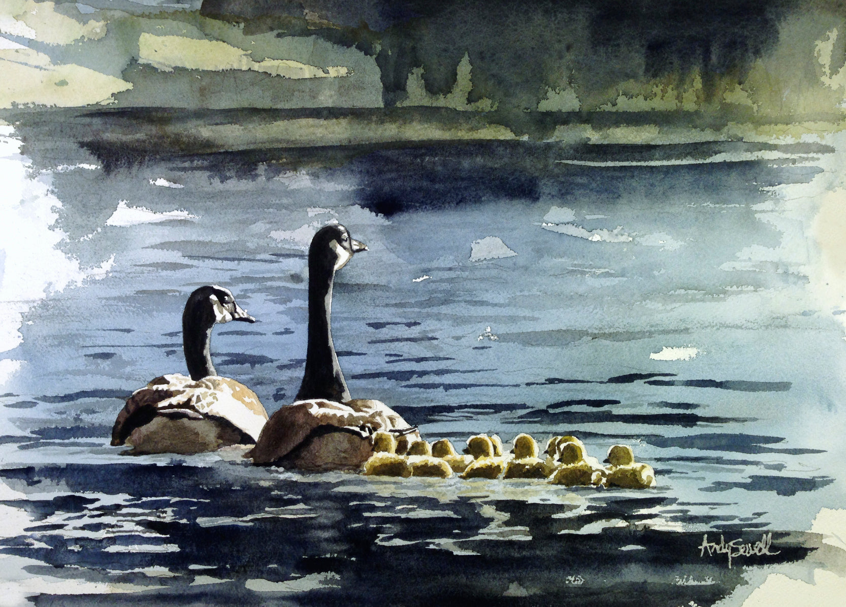 "A Family Swim" - 12"x16" A signed edition Giclee art print from an original watercolor of a canadian goose family.