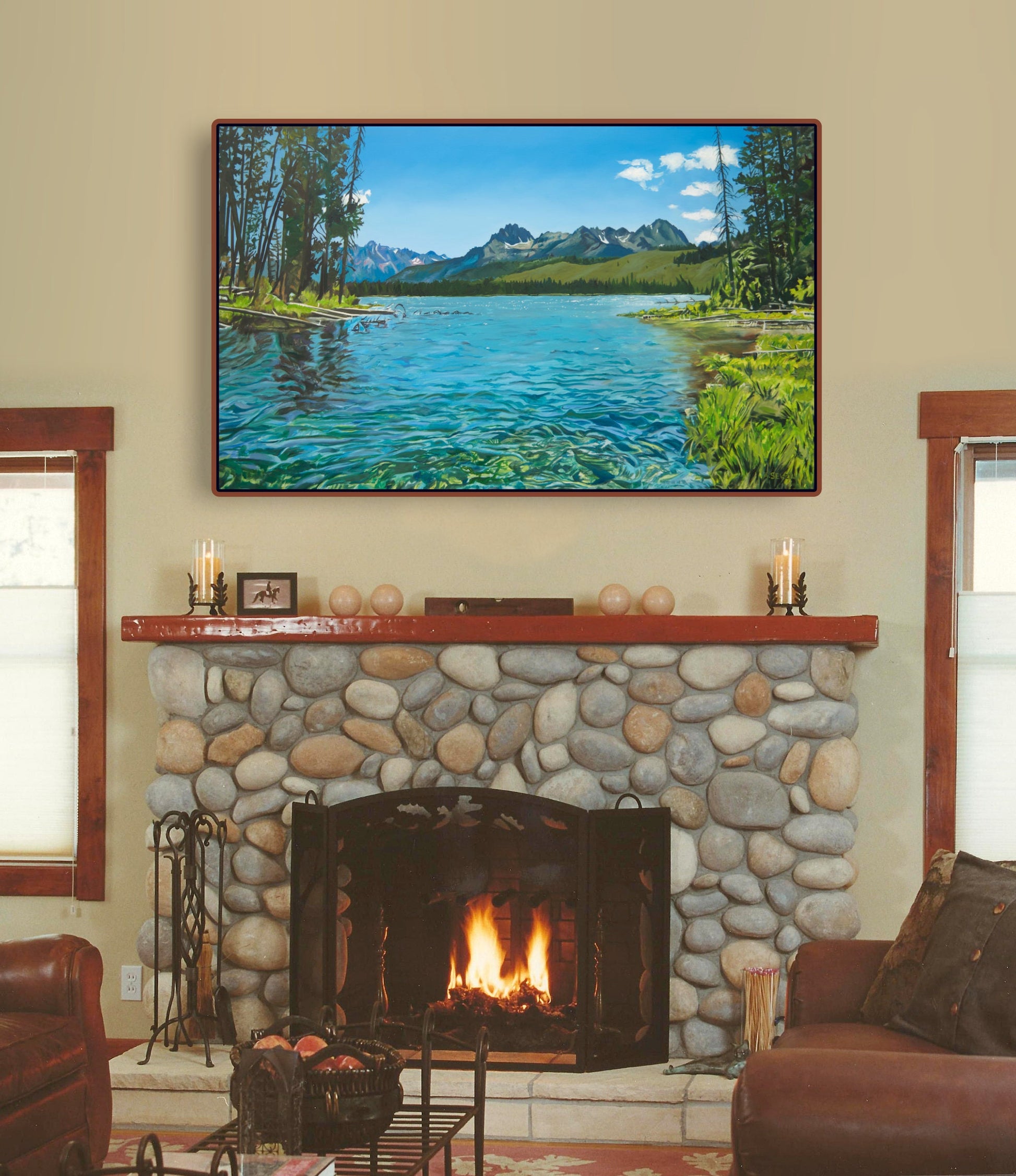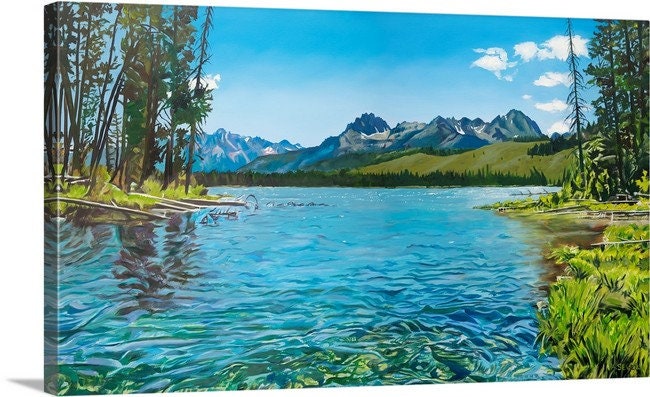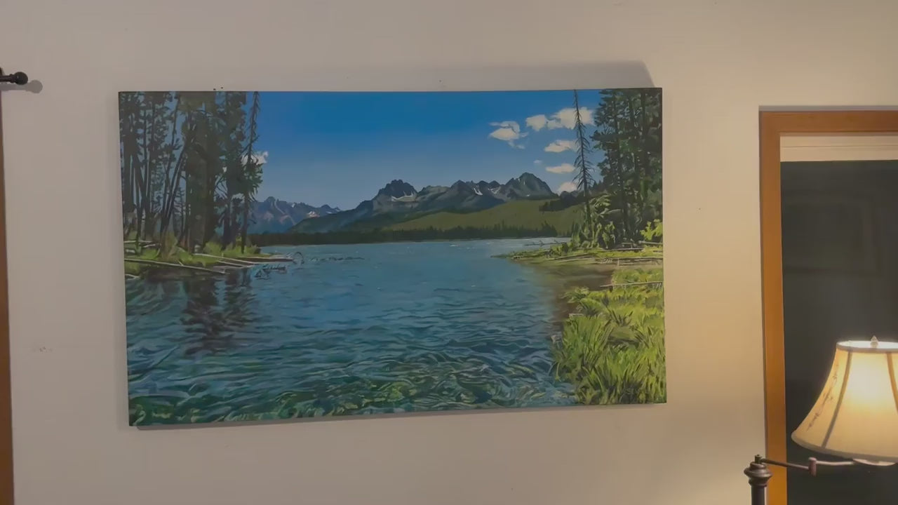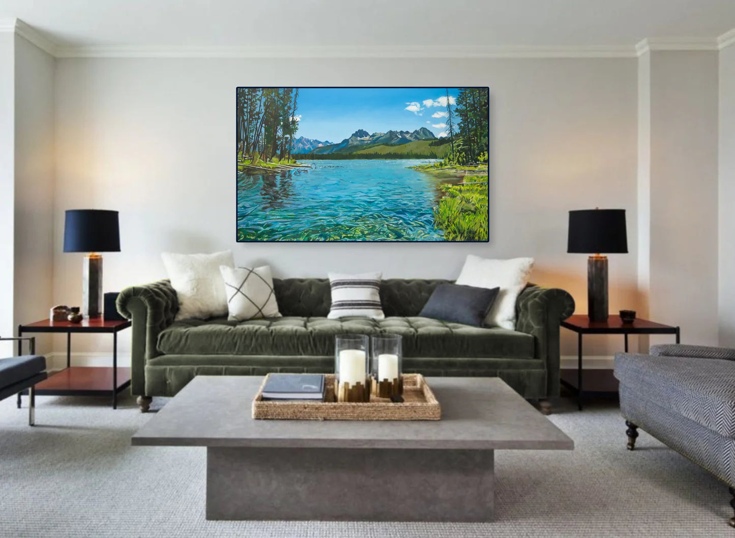 This is a beautiful original oil painting, or open edition print (Giclée) of my 58" oil painting featuring the the Redfish lake area in Idaho's fabulous Sawtooth Mountains.