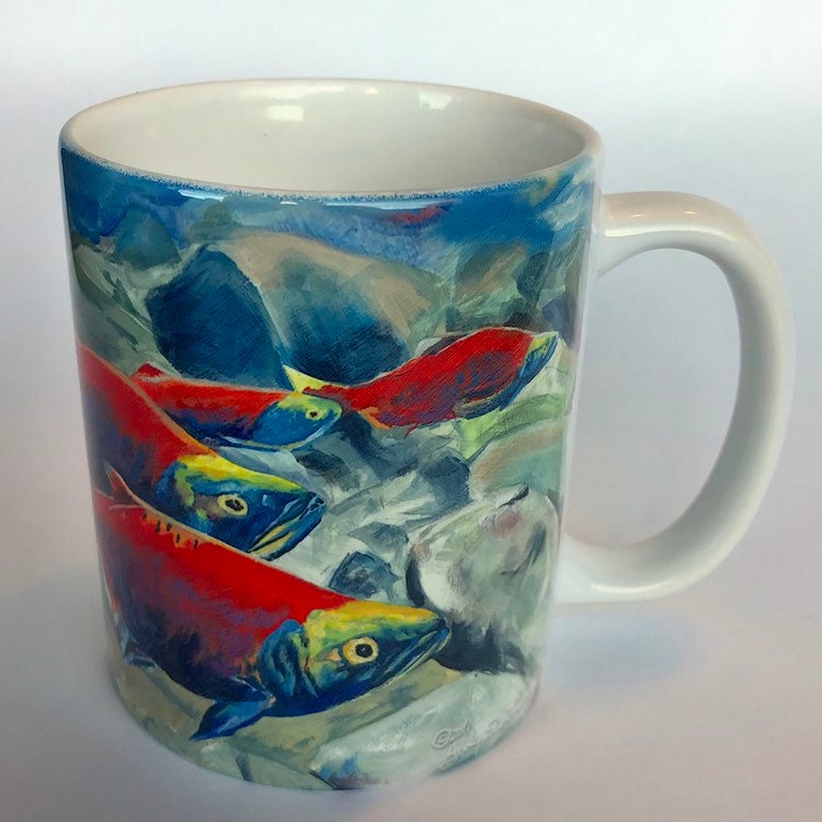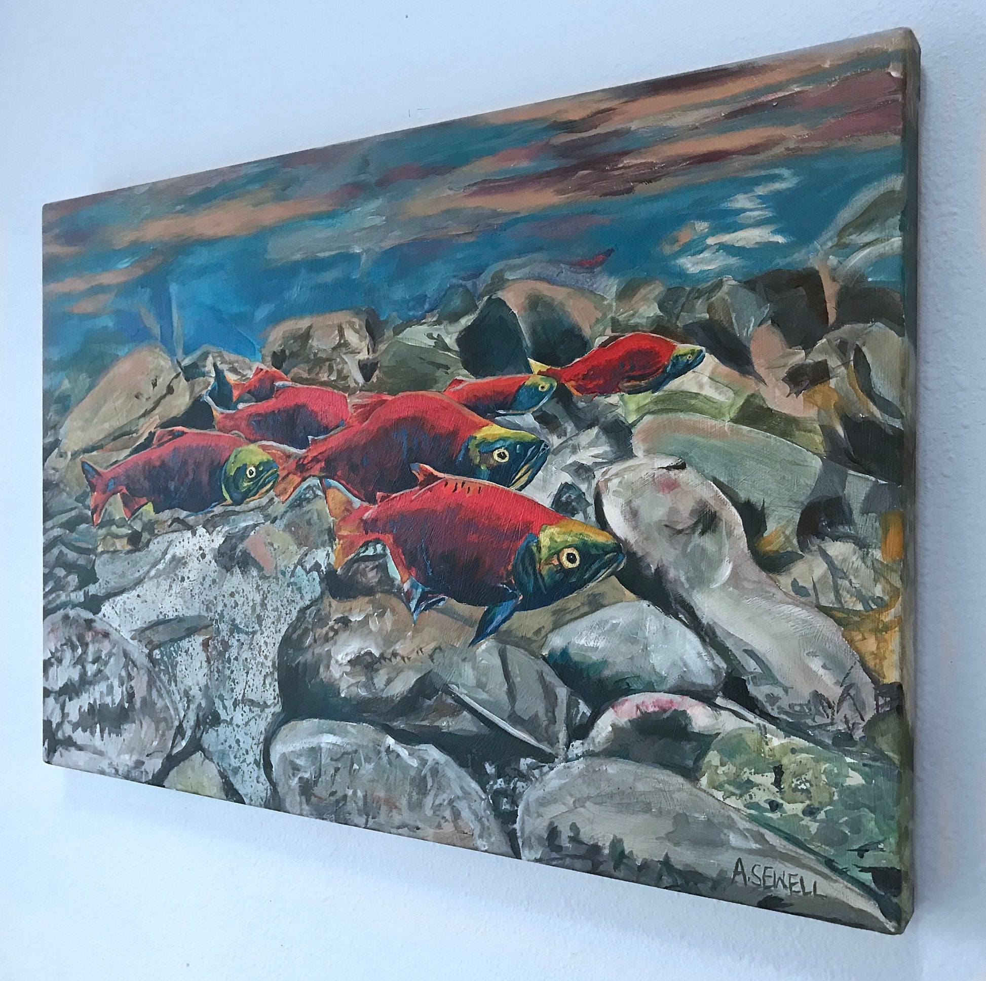 Title: "Return of the Reds" This is a beautiful 16"x24" Original oil on canvas also available as a signed print (Giclée) of my original oil painting featuring the return of the Sockeye/Kokanee Salmon up the river.