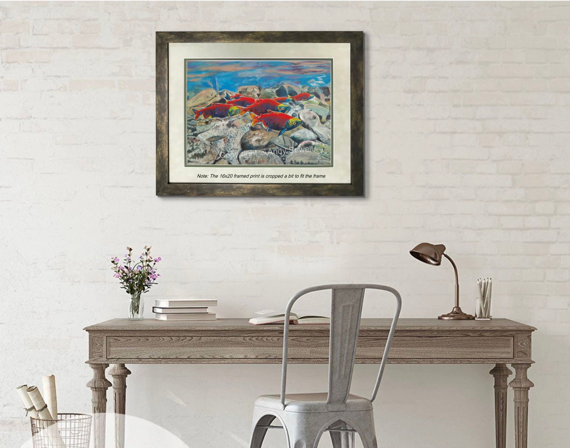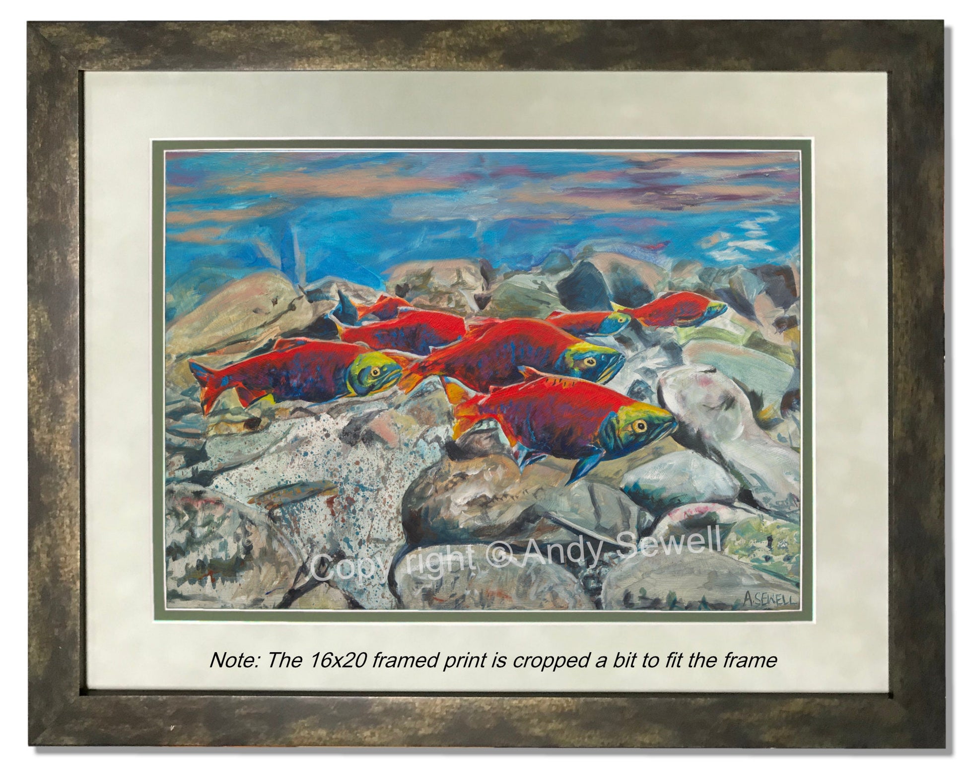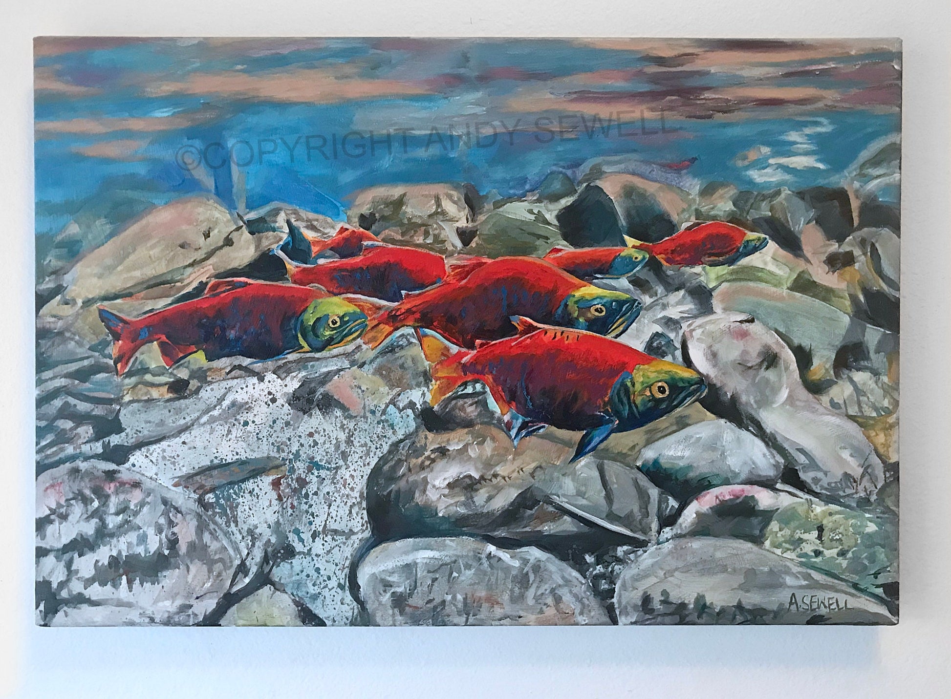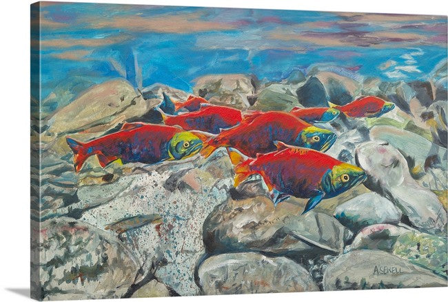 "Return of the Reds" - a canvas signed print of Sockeye Salmon or Kokanee on the return upstream.