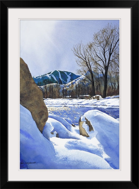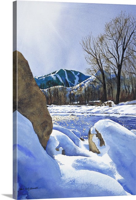 "Valley Winter Sun" - Ltd. edition Giclee reprod. from watercolor of Sun Valley's Bald Mtn.
