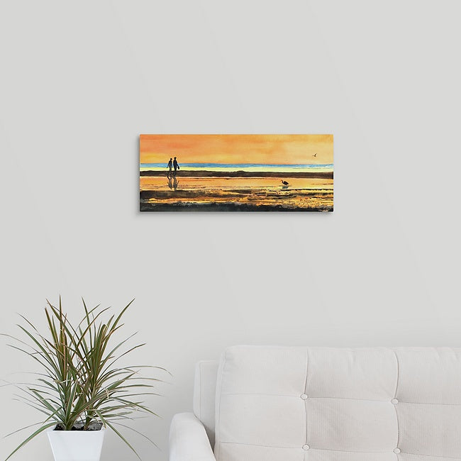 Title: "A walk on the Beach" - 24"x16" Original watercolor painting or signed edition Giclee reprod. from evening sunset stroll on the Northwest coast,