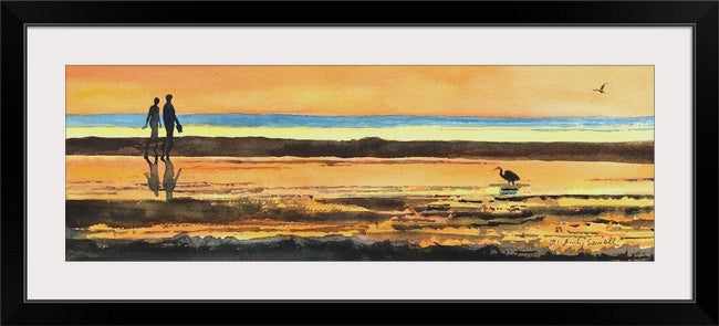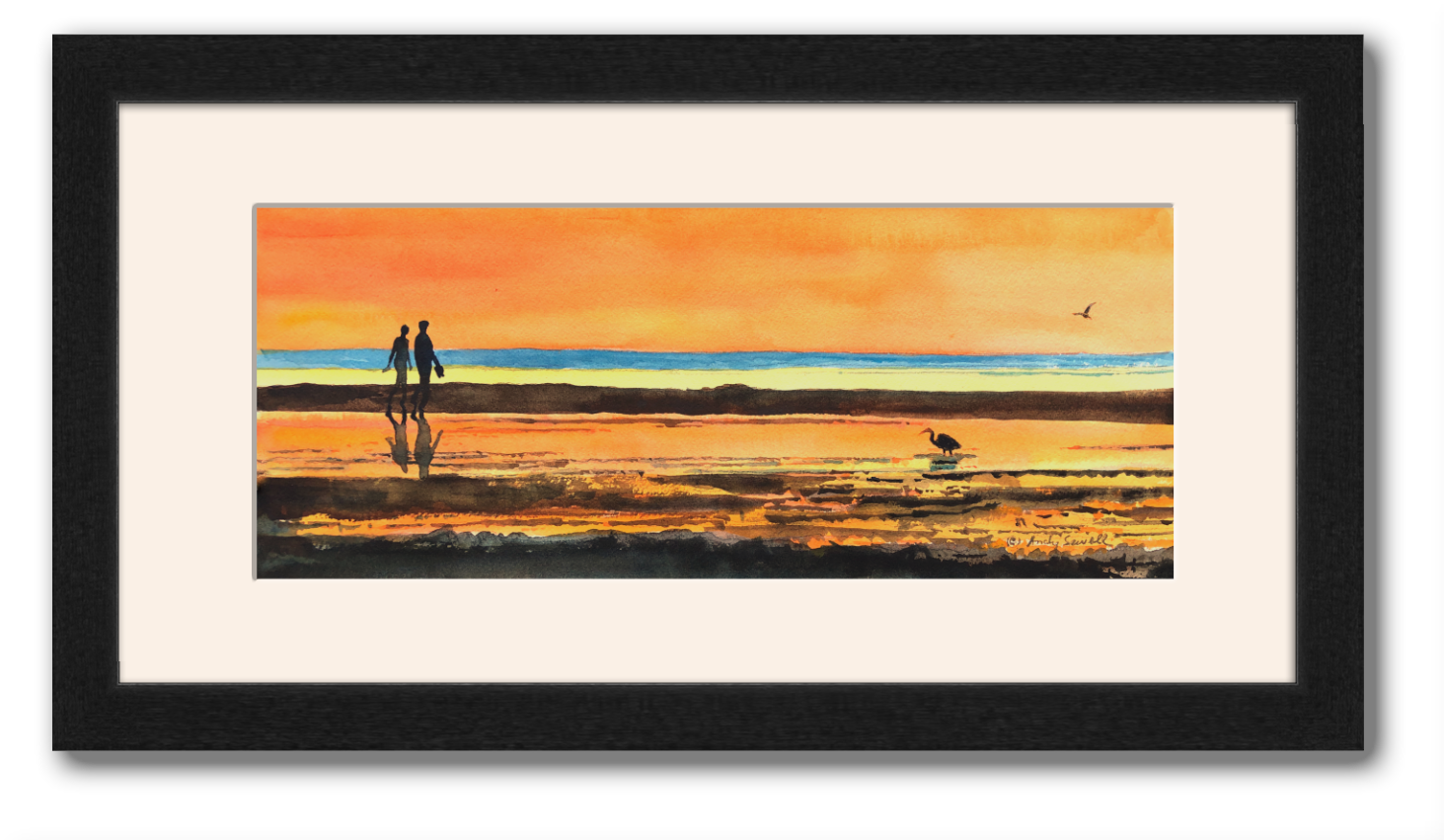 "A walk on the Beach" - Original watercolor or signed edition Giclee reprod. from a watercolor portraying an evening walk on the NW coast