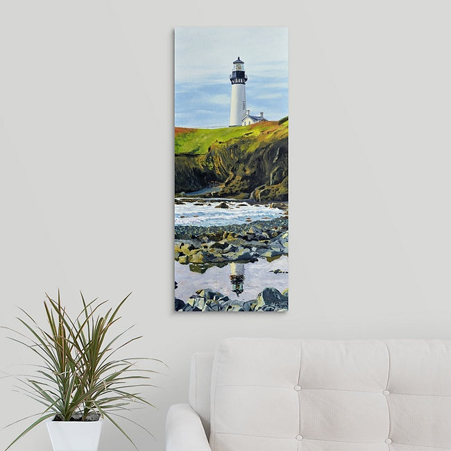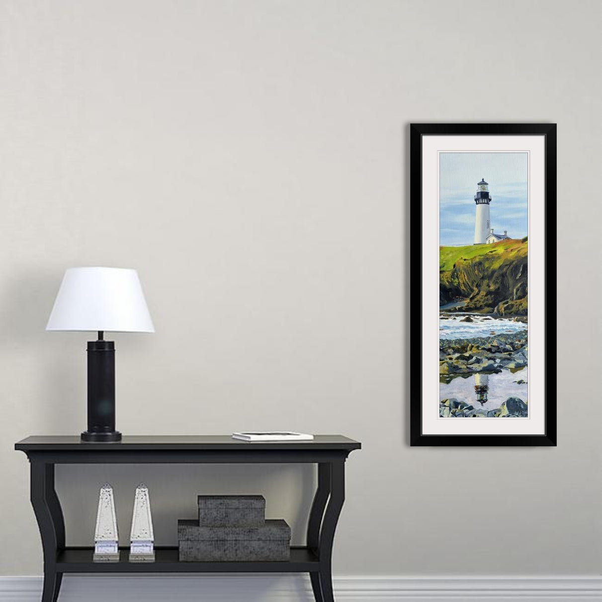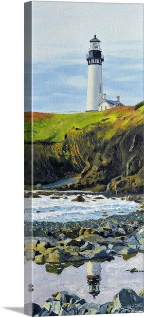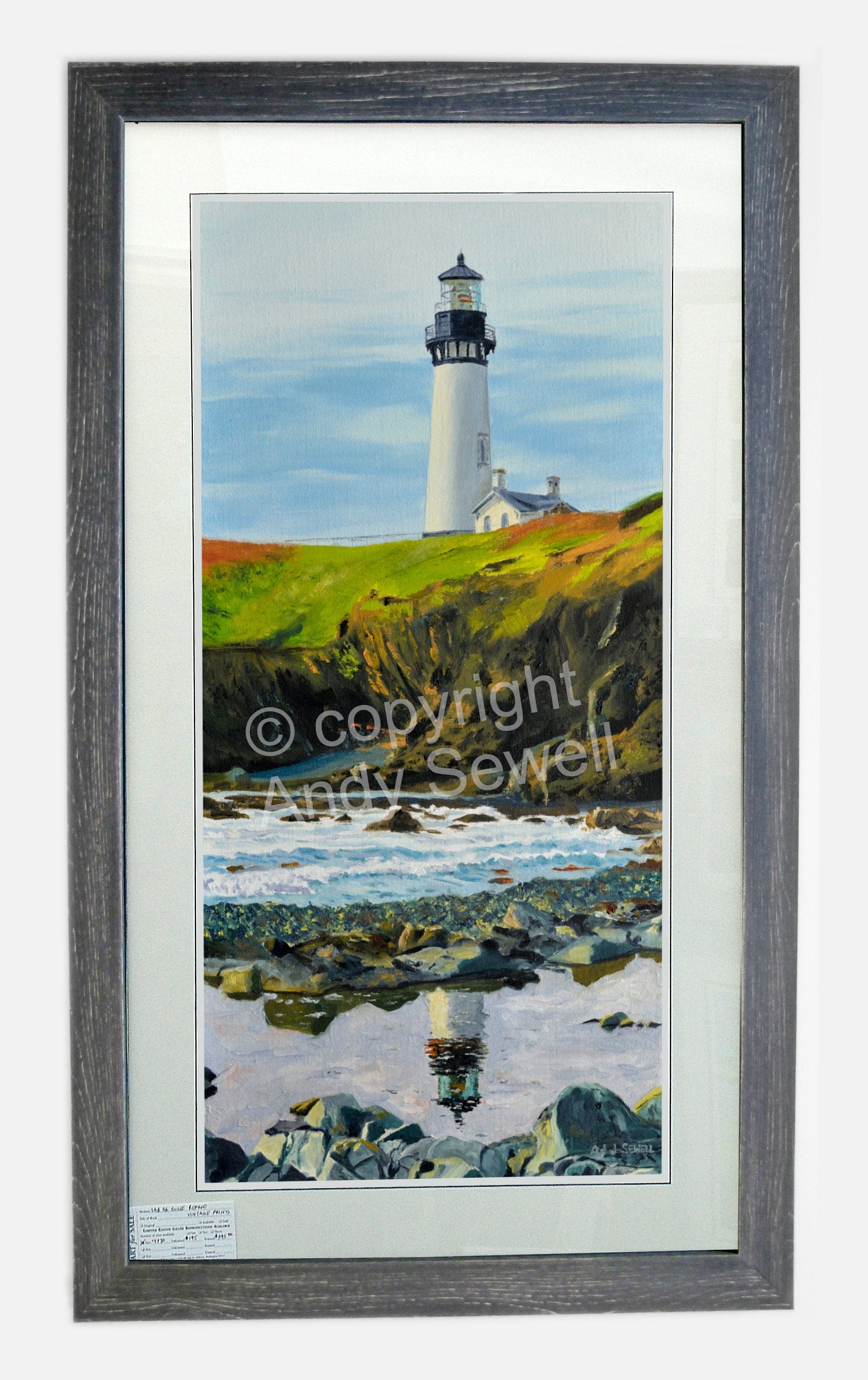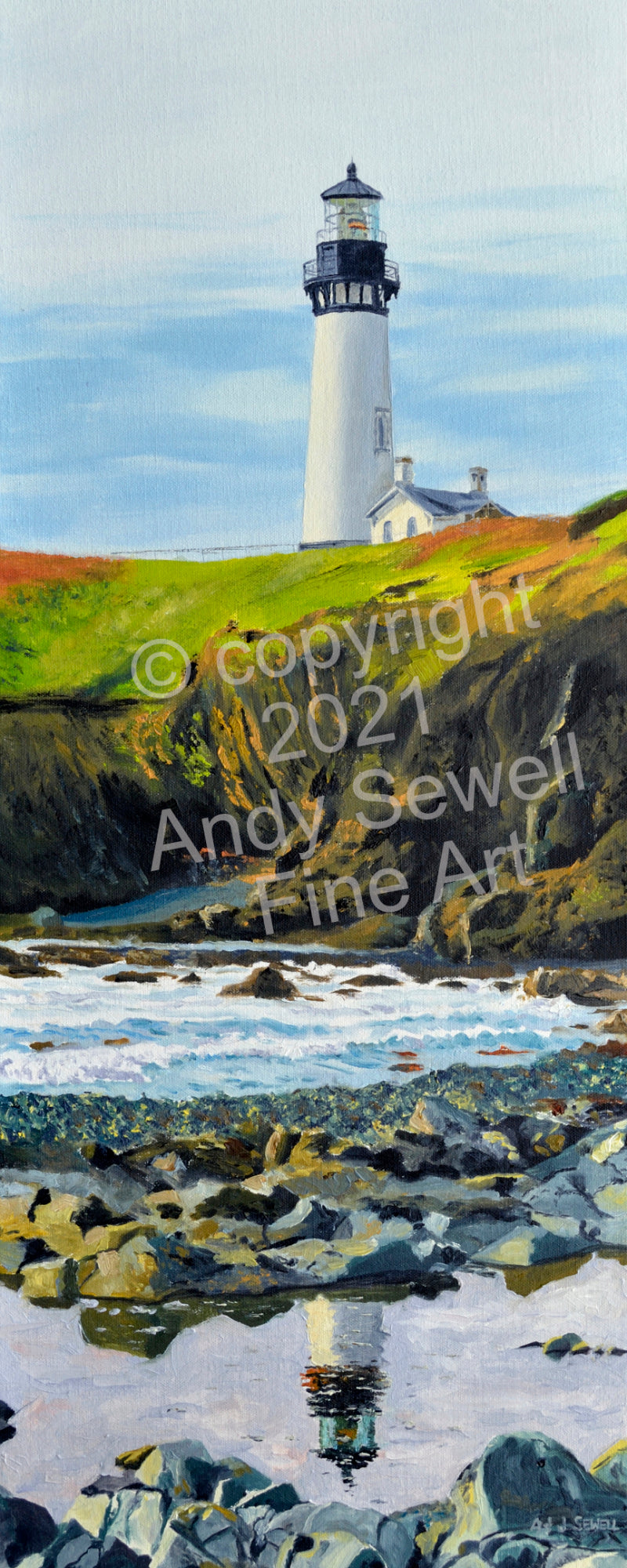 "Reflecting the Light- 12"x 30" Open ed. Giclee reprod. of Original oil painting of Yaquina Head Lighthouse reflecting - by Andy Sewell