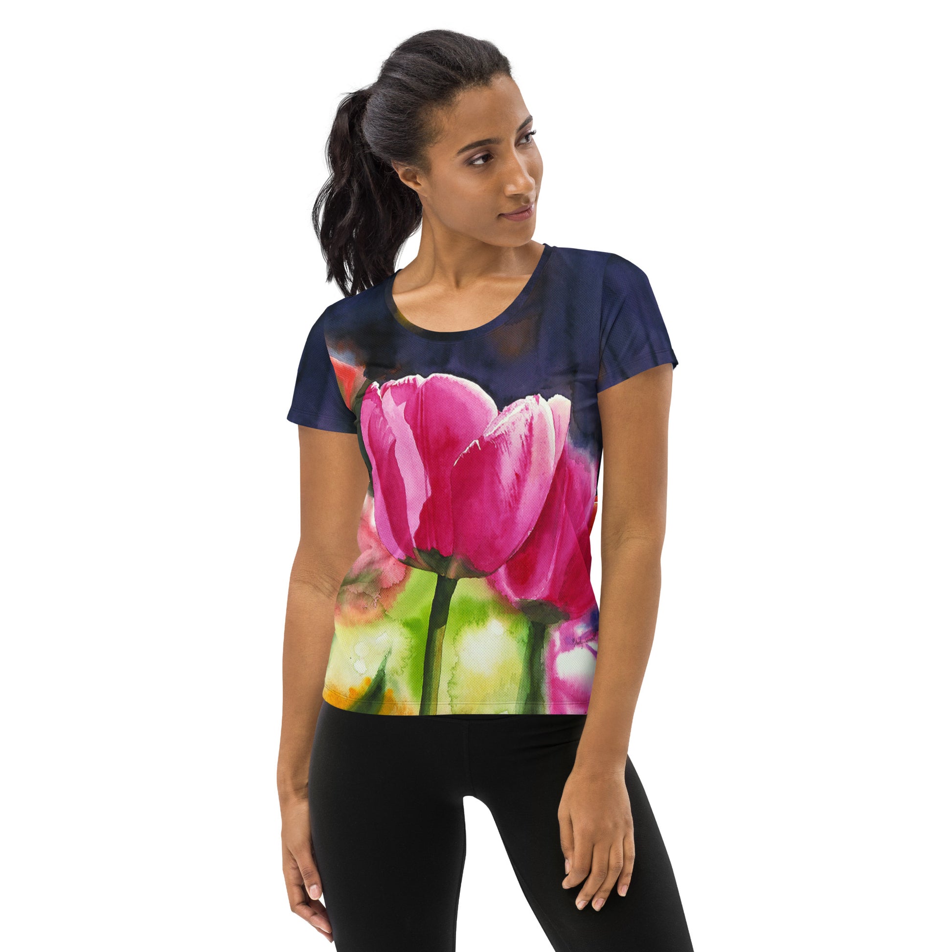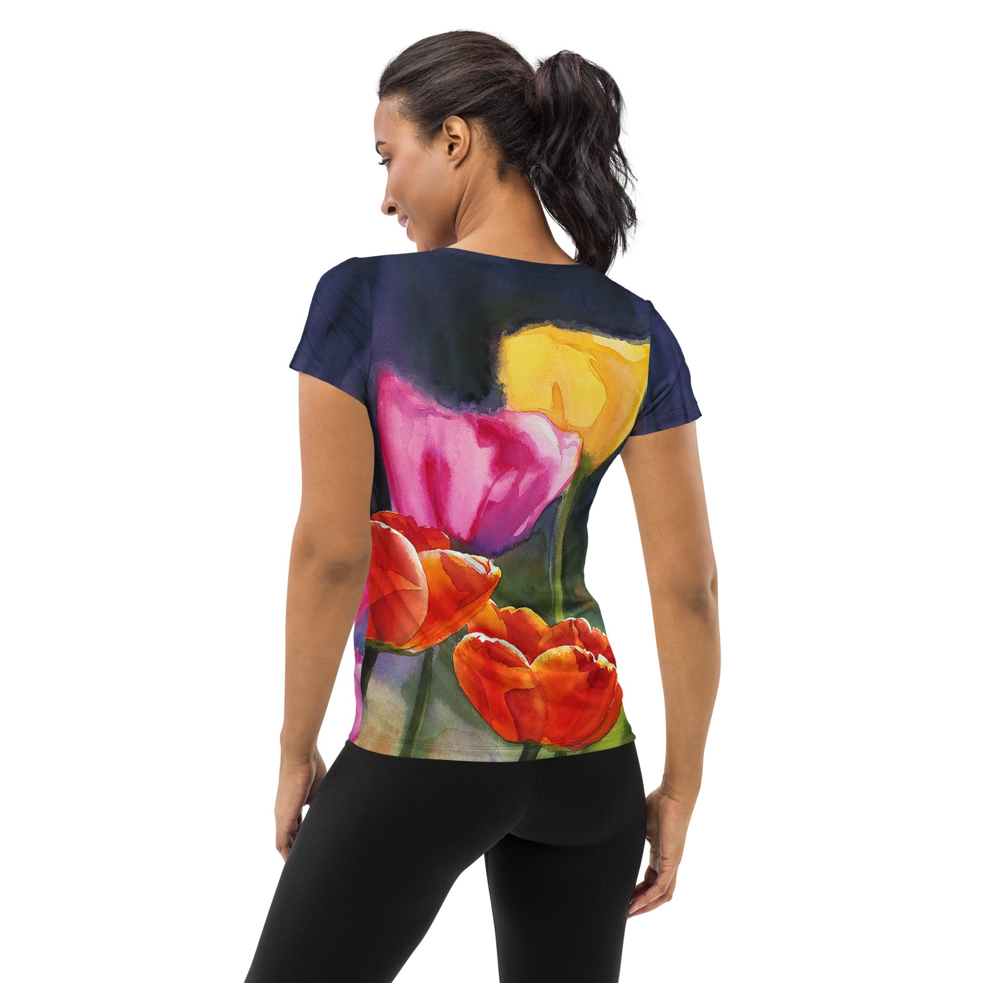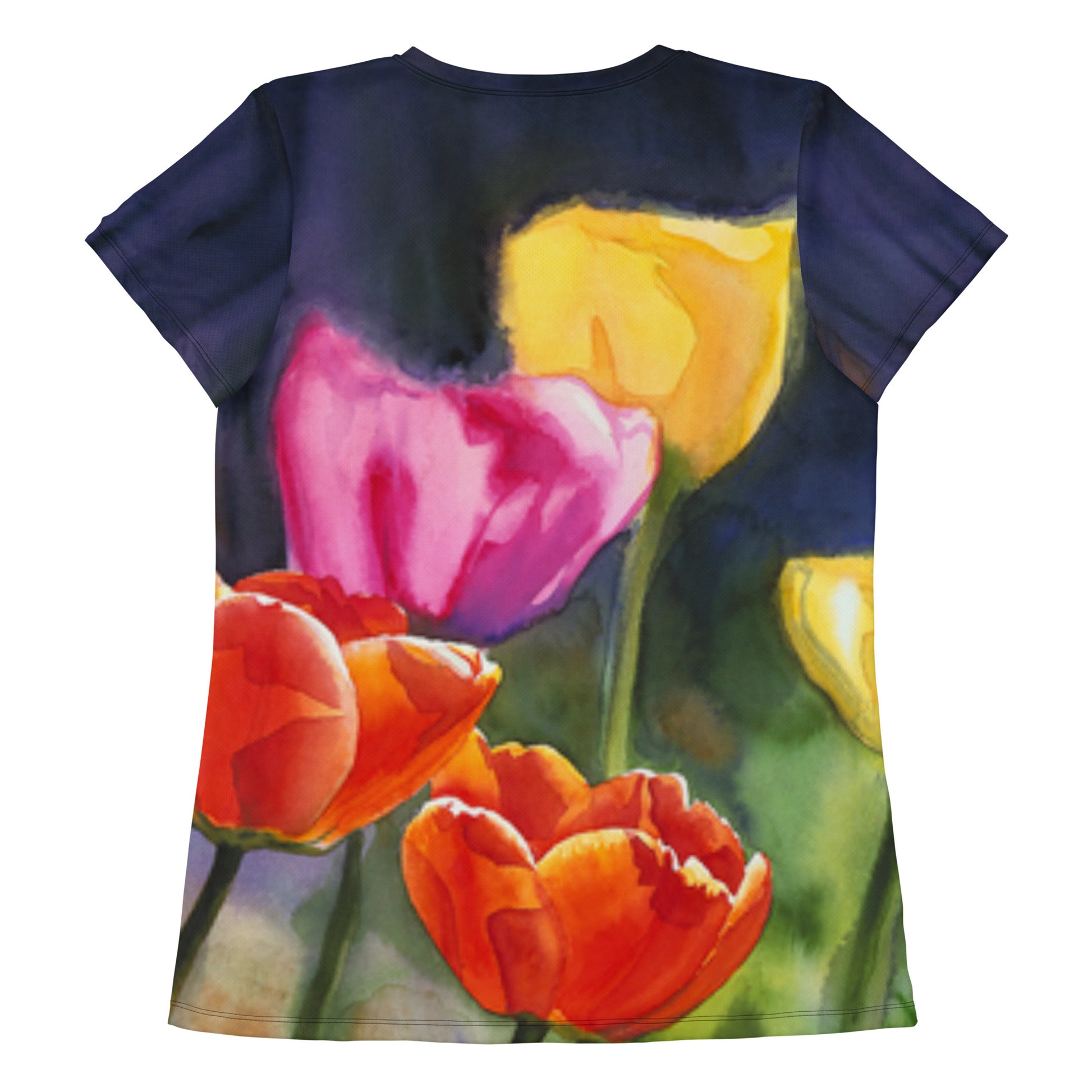 "Sunny Day Tulips" All-Over Print Women's Athletic T-shirt