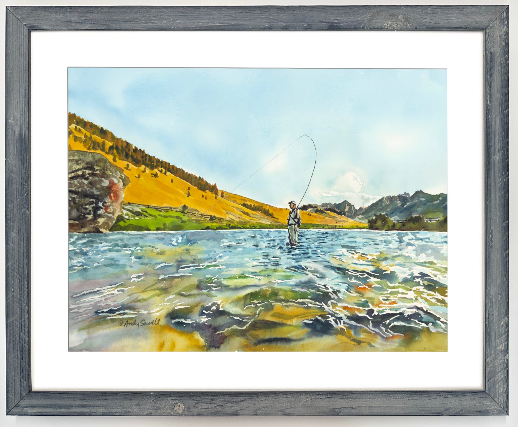 Title: "Bent Rod in the Sawtooths" This is a beautiful 18"x24" Original watercolor or giclee print from a Watercolor painting and available as an open edition signed print (Giclée) from my original watercolor painting featuring fishing on Idaho's Scenic Salmon River.