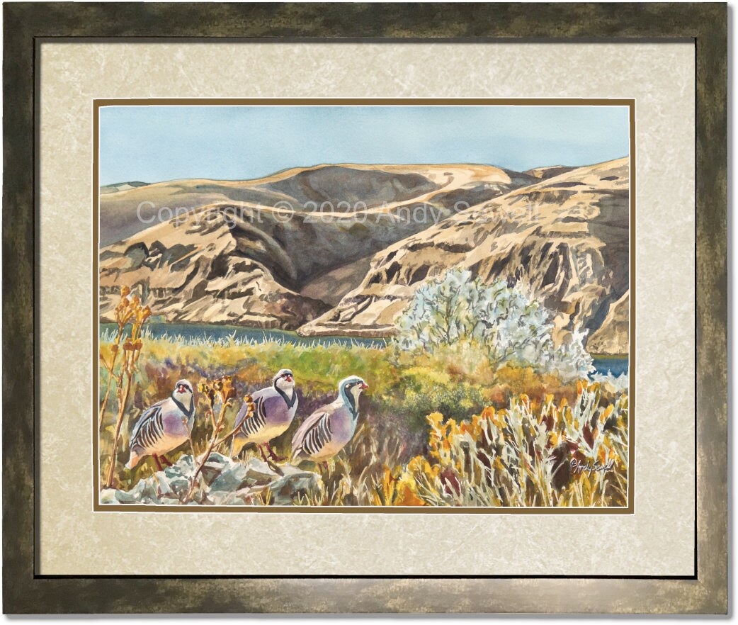 "River Chukar Trio" - An open ed. Giclee reprod. of Chukars on the river.