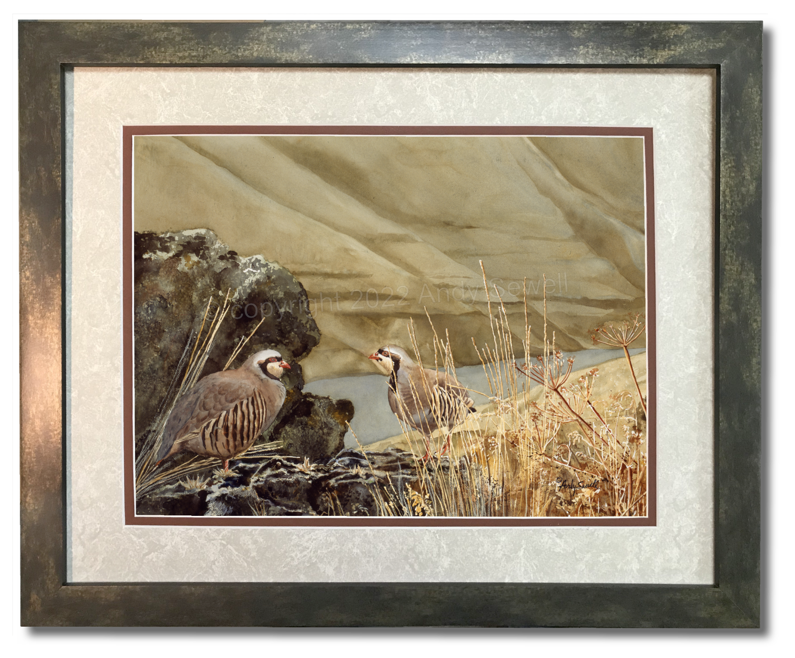 Title: "Chukars on the Snake" This is a beautiful s/n ltd. edition print of my Original watercolor featuring a pair of chukars on the Snake River.