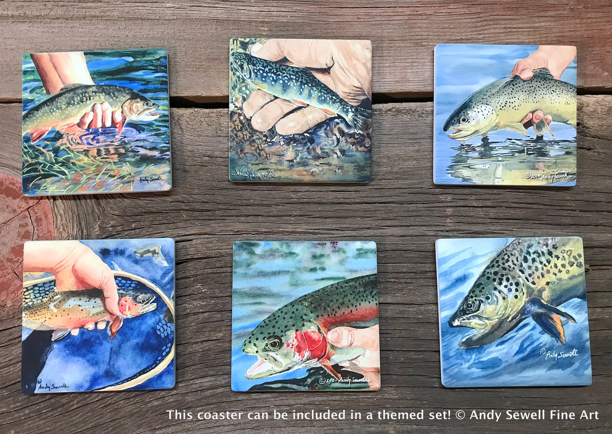 ASC299 "Brown Trout Sparkle" ceramic coaster