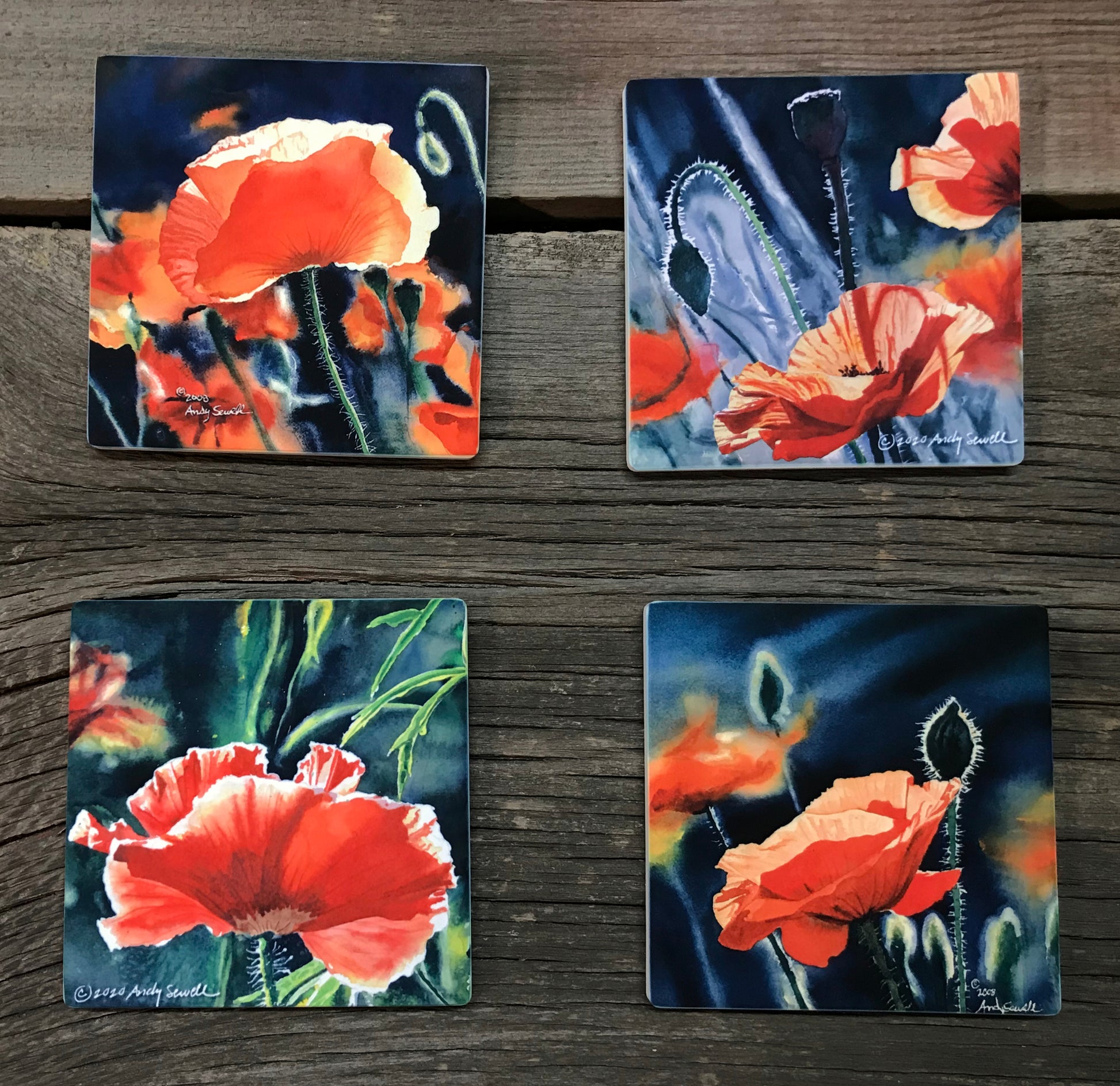 "Garden Poppies" themed coaster sets: 2 options, see below.