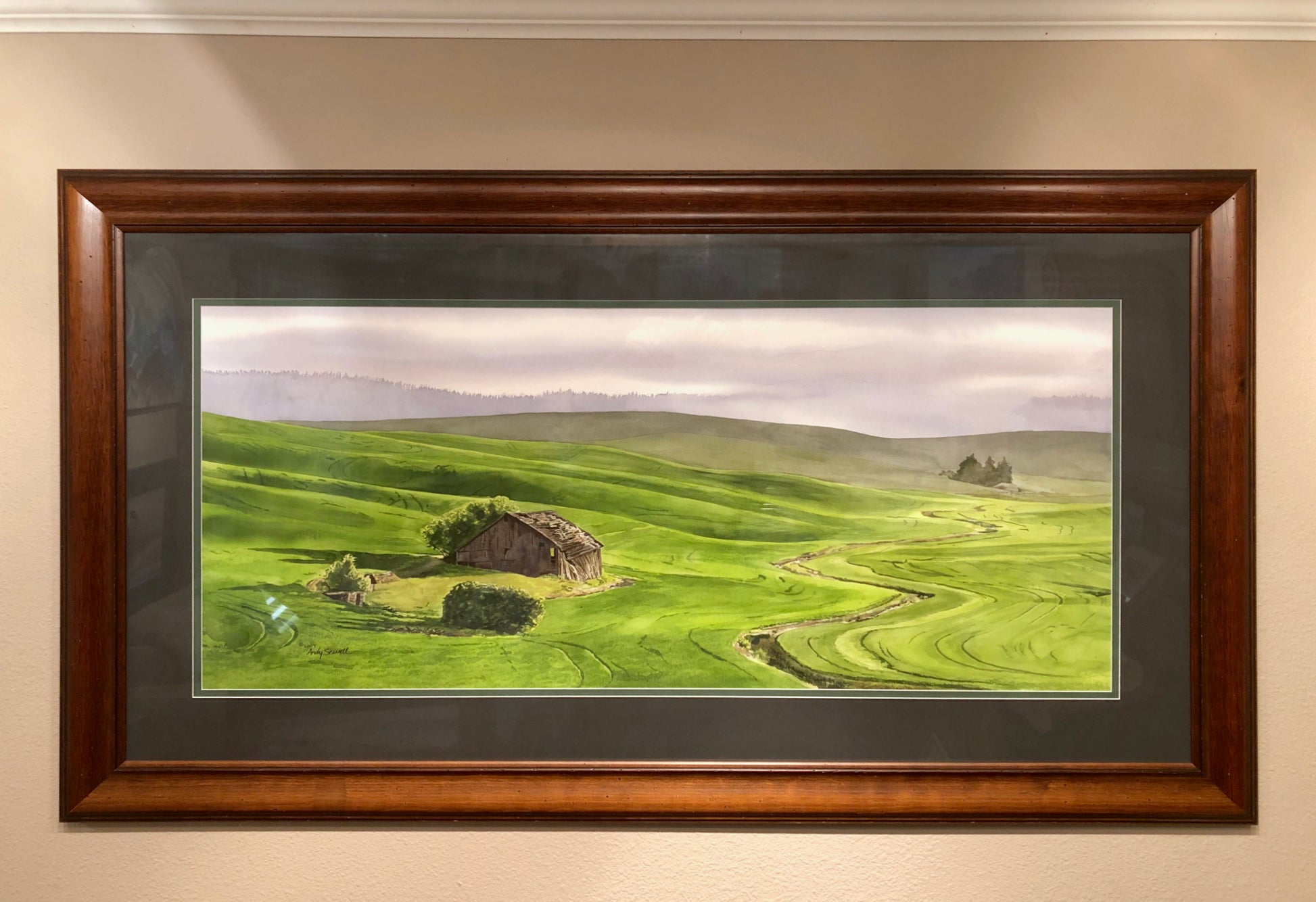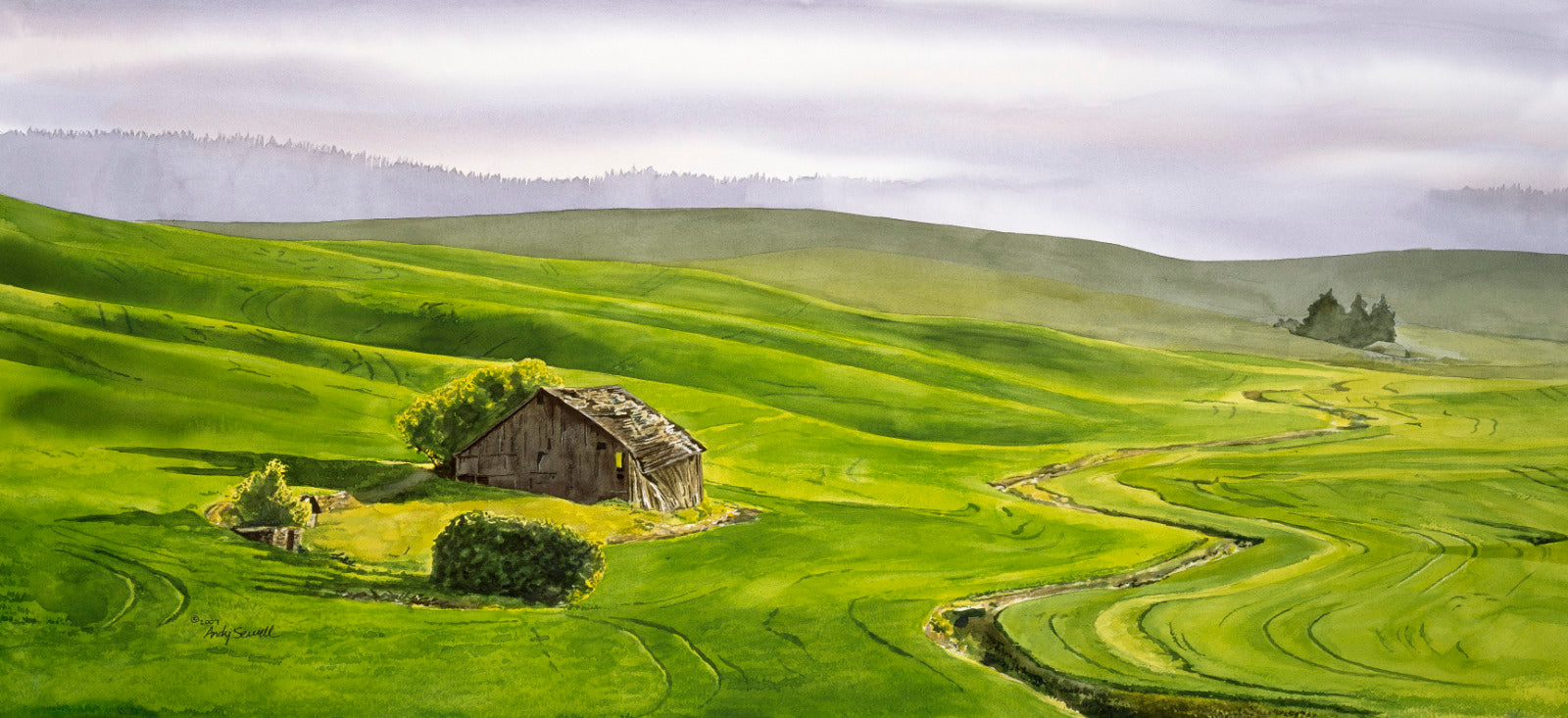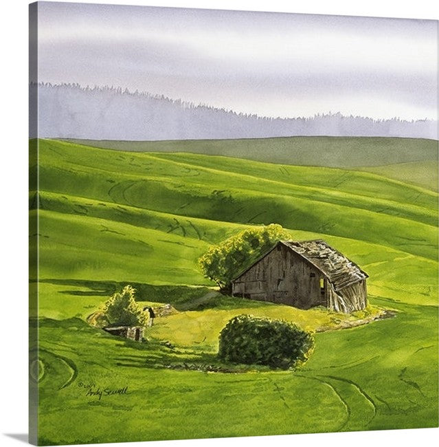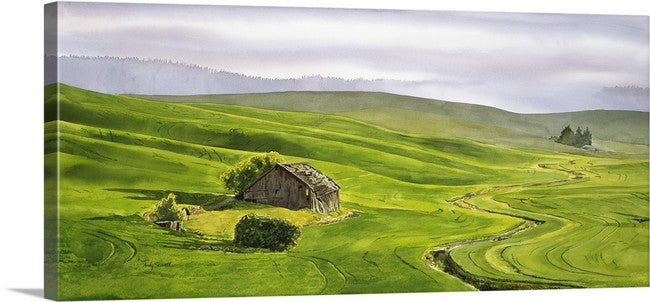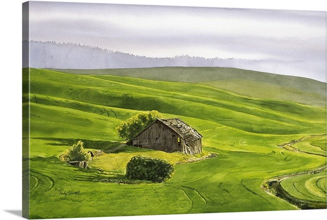 Morning Sunbreak on the Palouse the old barn has since fallen down. I painted this image in watercolor.
