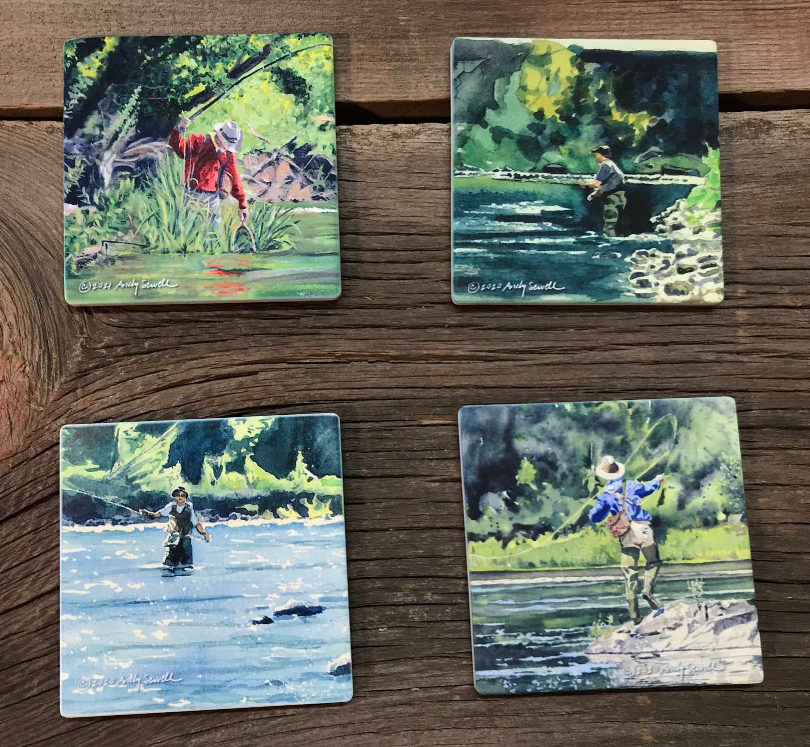 The fine art ceramic coaster are created by the artist Andy from his original paintings. They are a very scratch resistant matte surface with cork backing. The coasters have sharp details and vivid color. They are 3 7/8" square. Many of the images come in sets. You can search for your favorite subjects. Mix and match any combination of coasters to create your own matching or custom set.