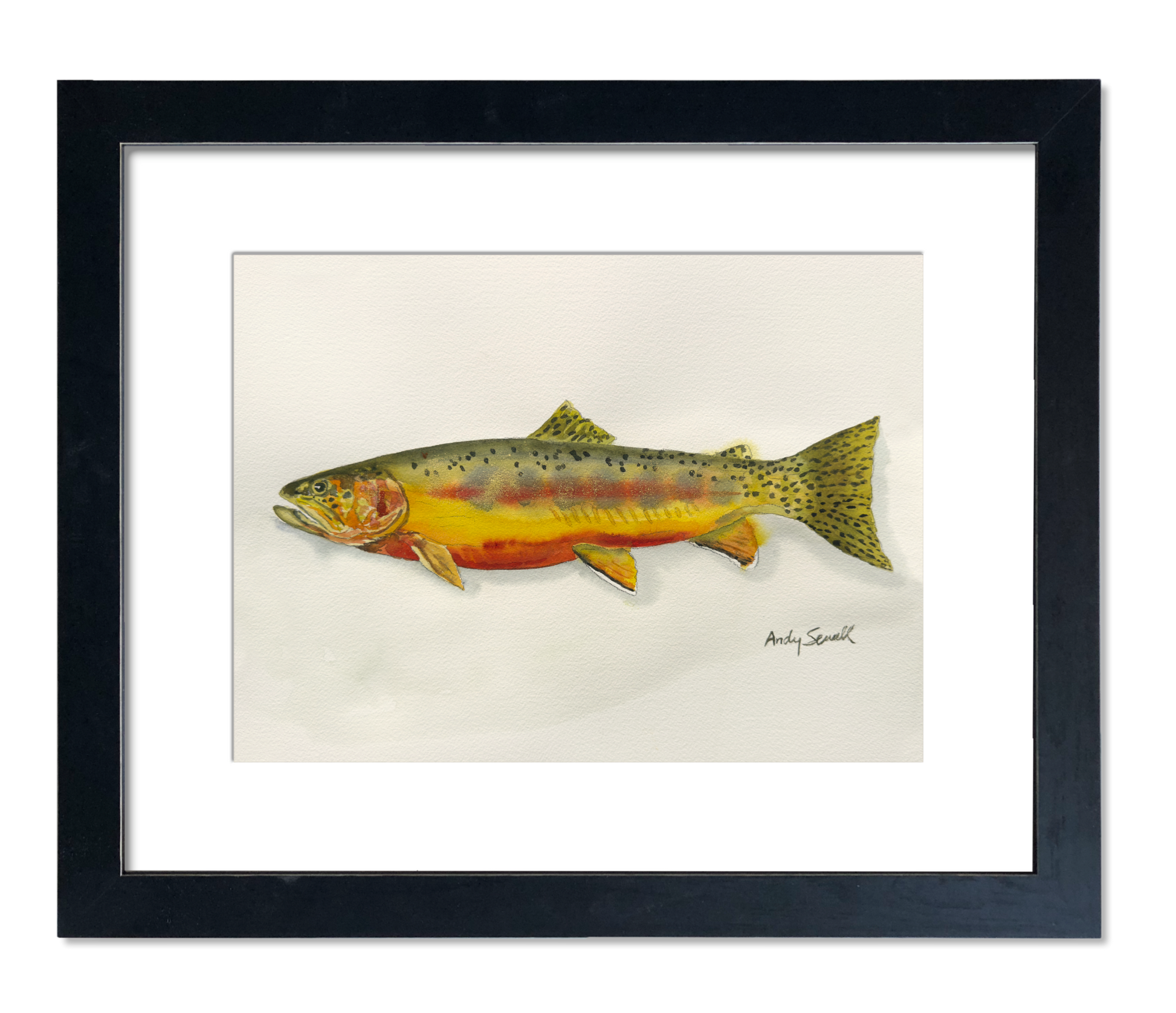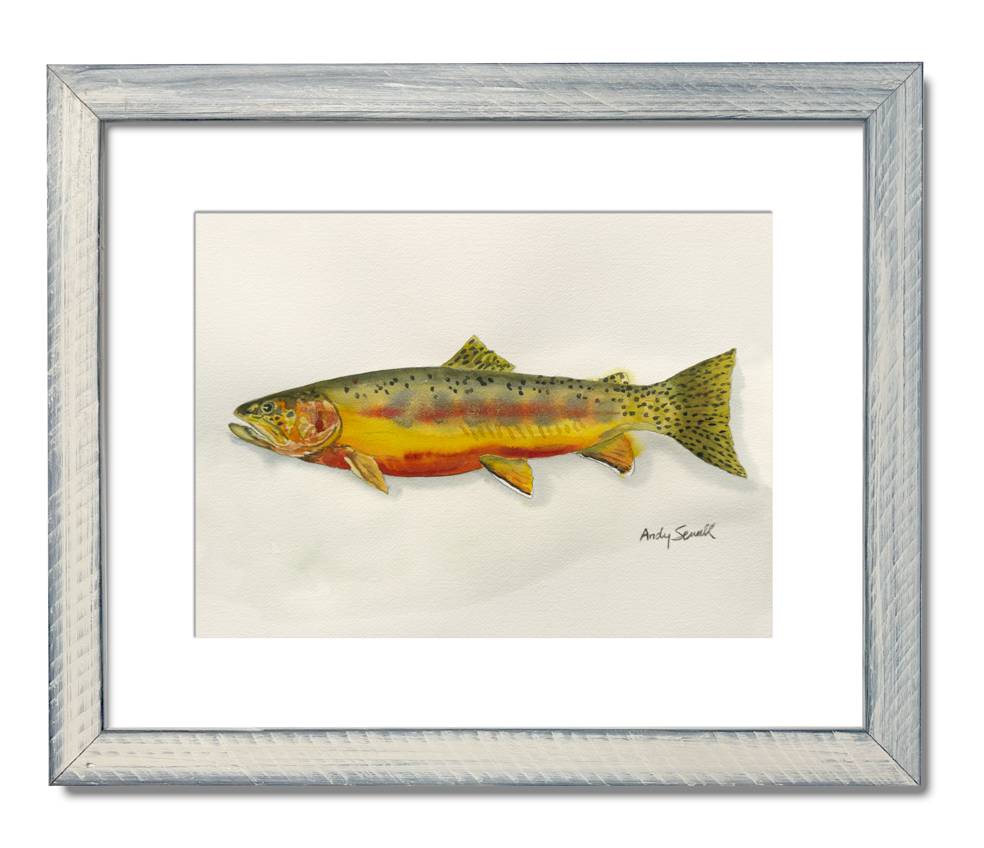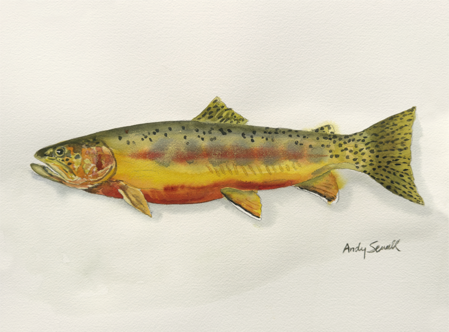 This is a beautiful original watercolor painting of my rendition of a Golden Trout. also featuring the array of all four of the other less comon trout, the Apache, Bull, Tiger and Golden. Each trout can be purchased separately or as the set. Go to the website page for each trout to see more options for a particular trout print