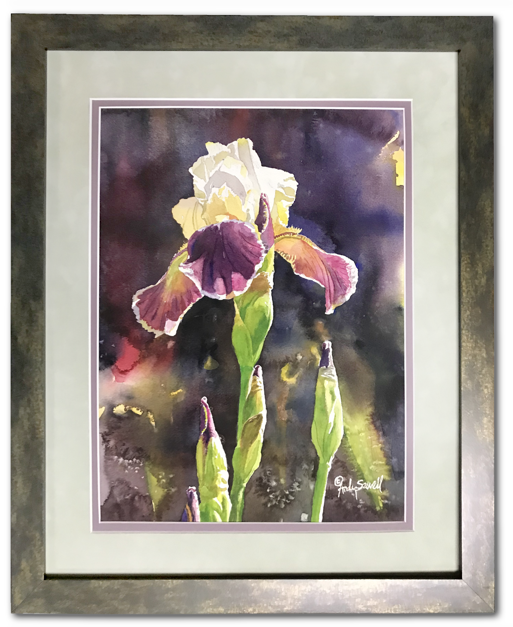 Title: "Iris Light" This is a beautiful watercolor available as signed edition print of my original watercolor featuring a sunlit Iris.
