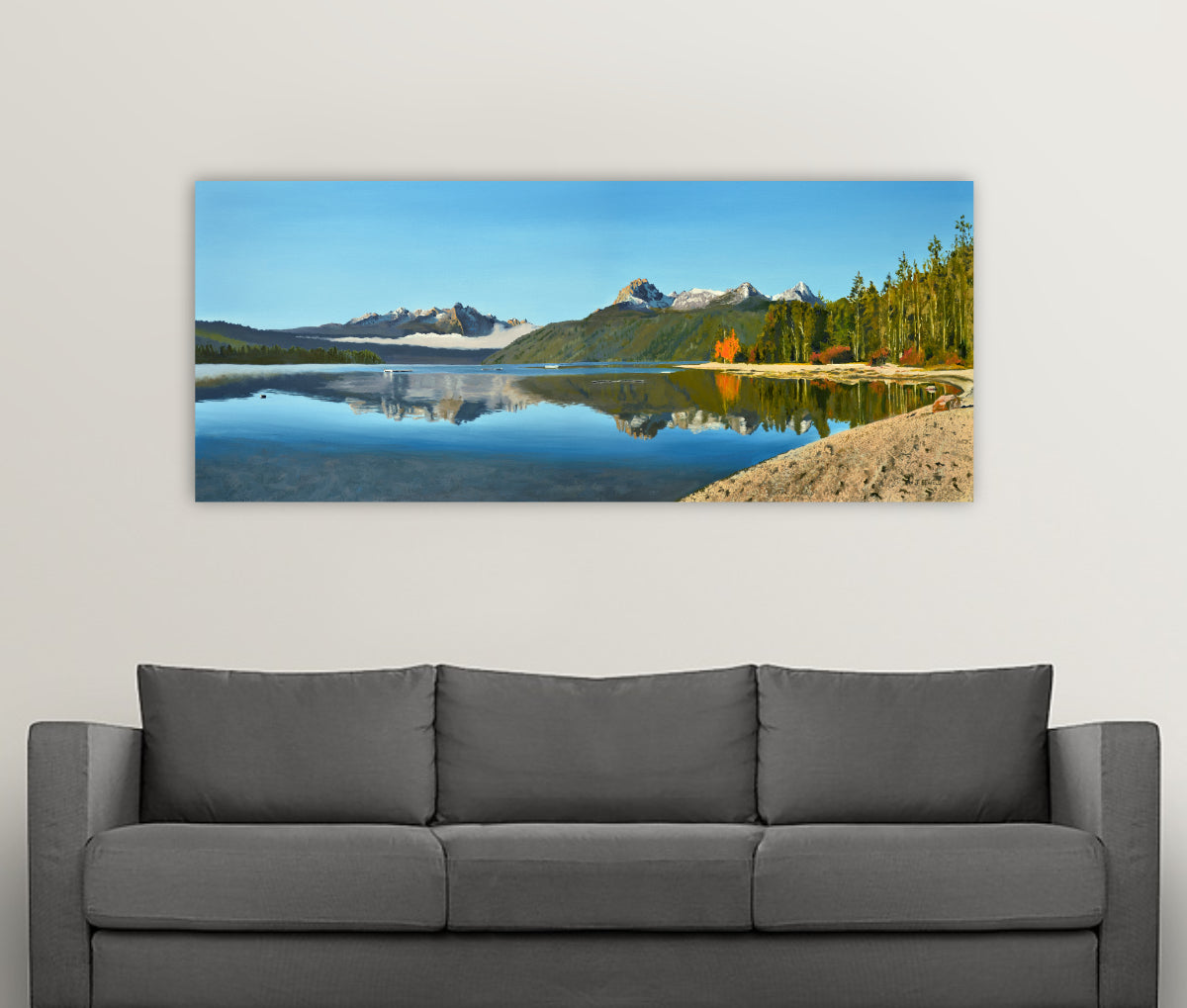 "Redfish Reflections“ This is an Open ed. print (Giclée) of my Original oil painting featuring the view of the Sawtooth Mountains over Idaho's Stunning Redfish Lake.