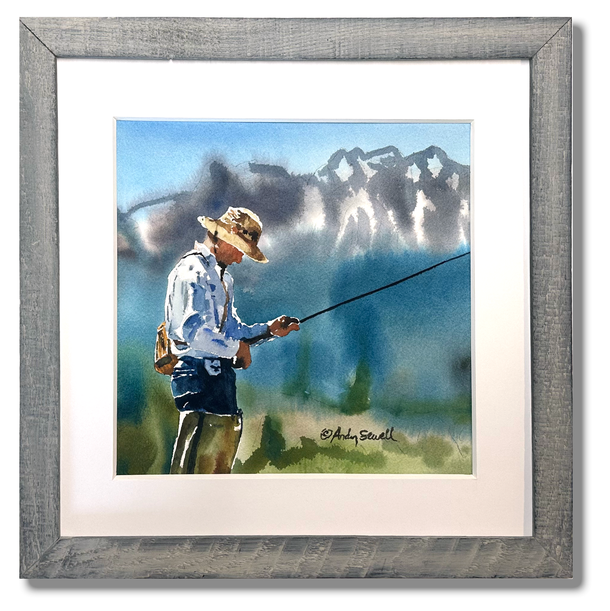 "Reeling it in" - 10x12 original watercolor framed at 12x12