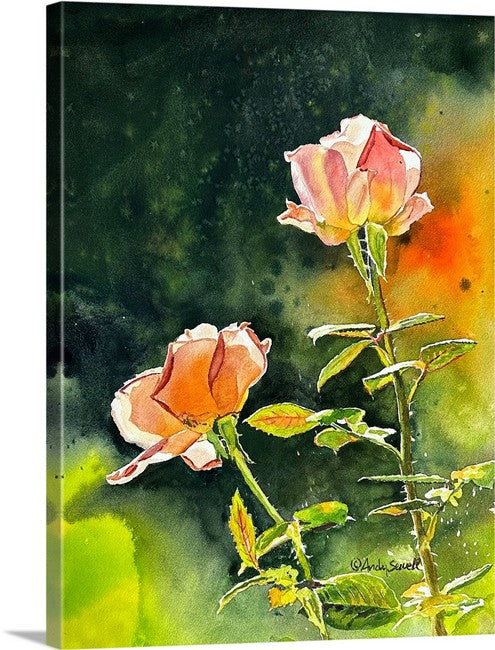 "Rose Duet" - 12x16 Original watercolor or signed edition giclee art print of 2 garden roses.
