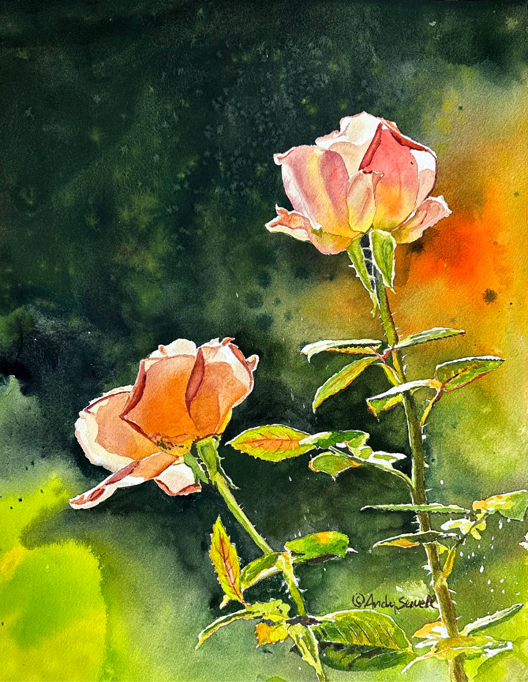 Title: "Rose Duet" This is a beautiful original watercolor or signed edition print of my original watercolor featuring two roses in the garden together.
