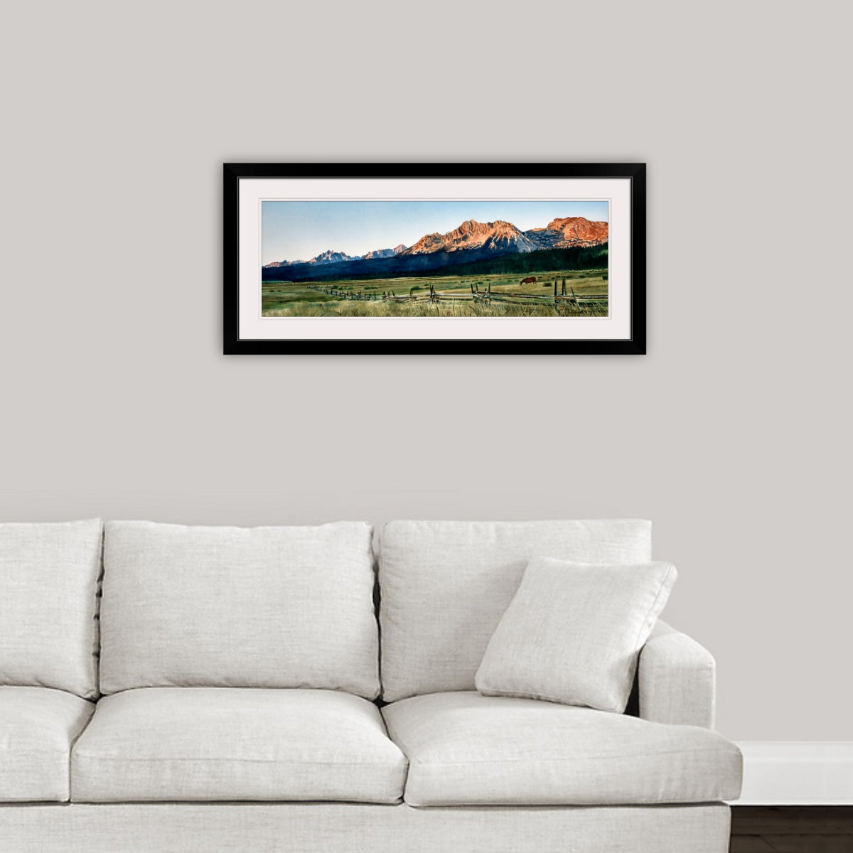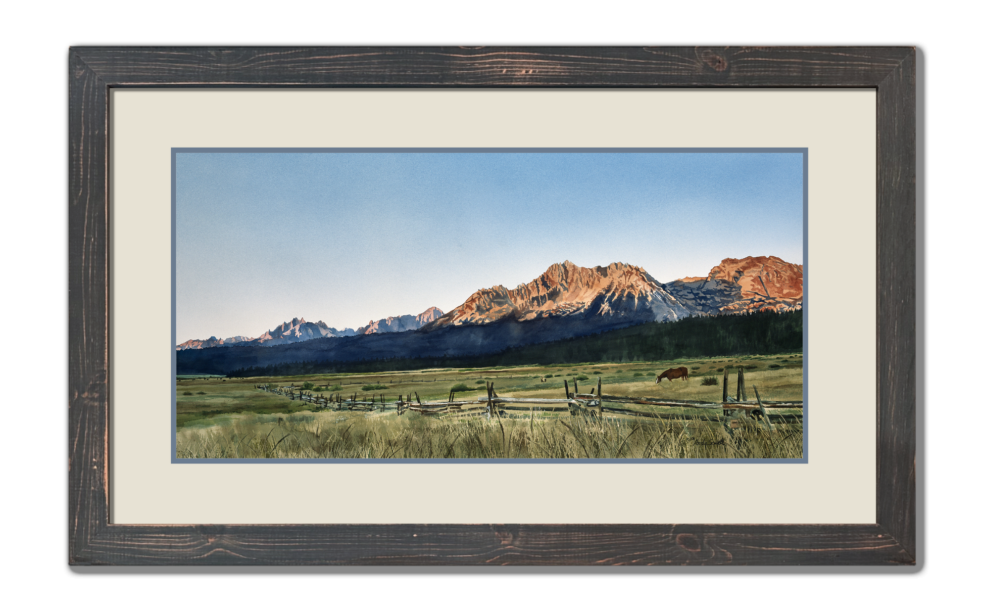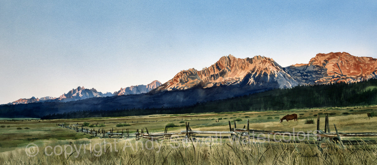 "Sawtooth Sunrise“ This is a beautiful 25"x54" Open ed. print (Giclée) of my Original watercolor featuring the view of the Sawtooth Sunrise in Idaho.