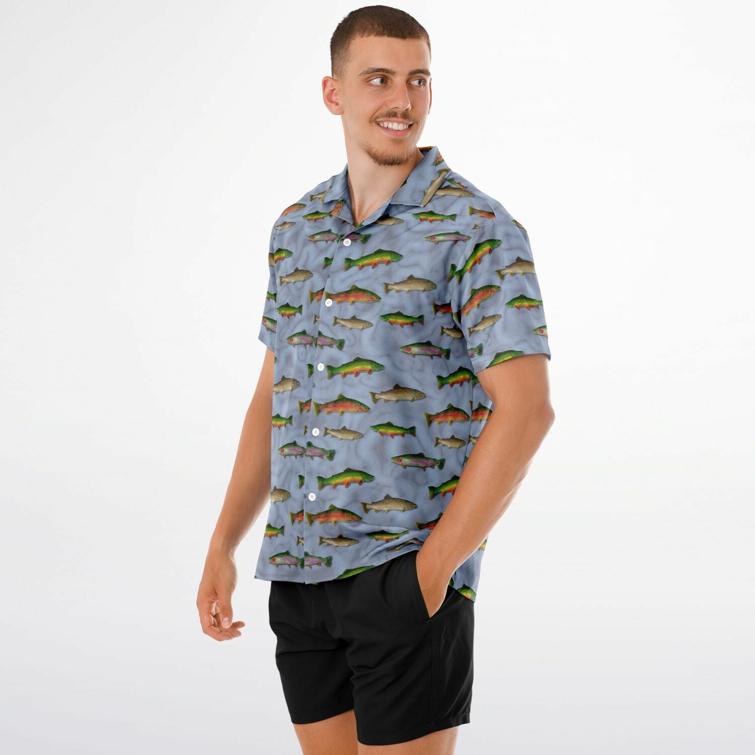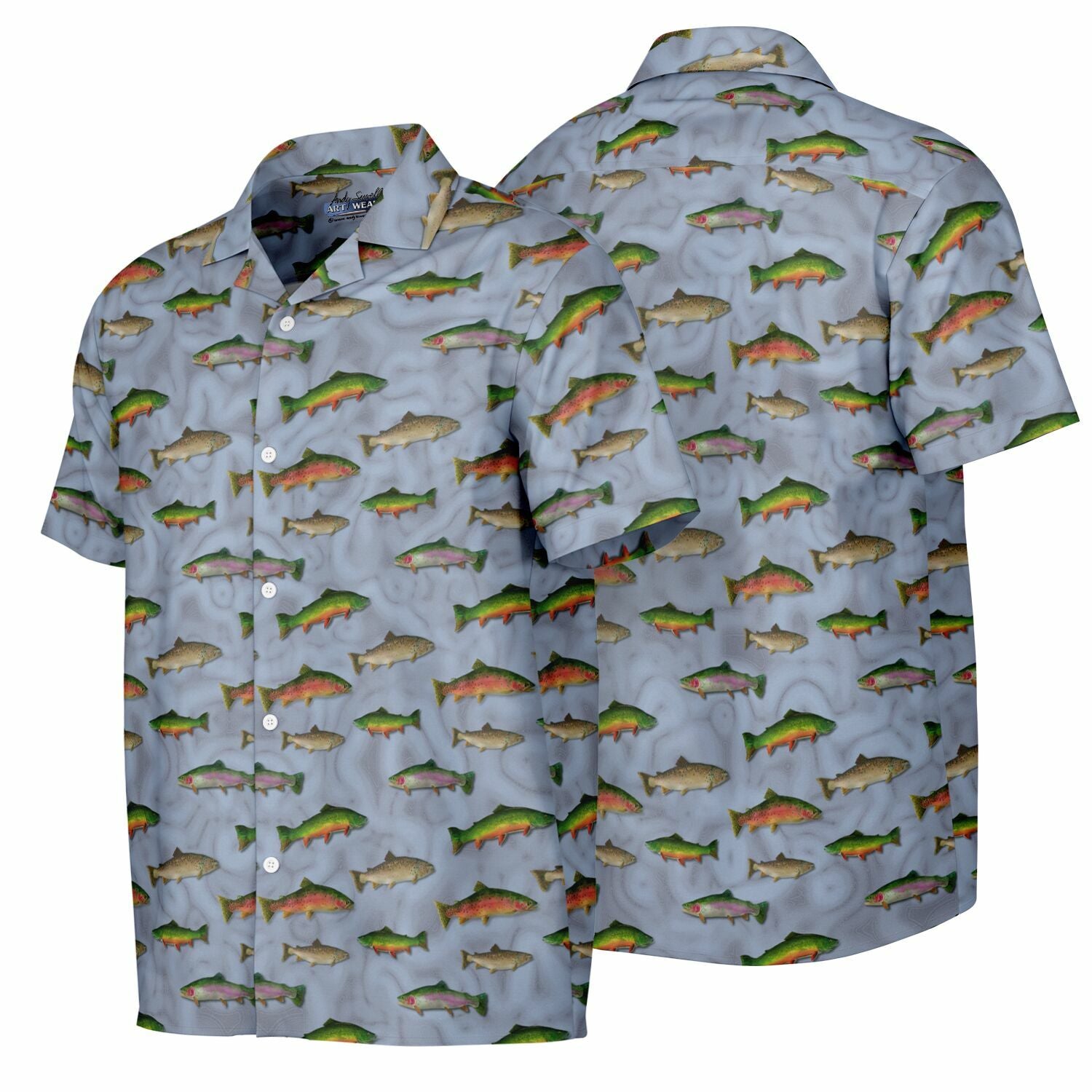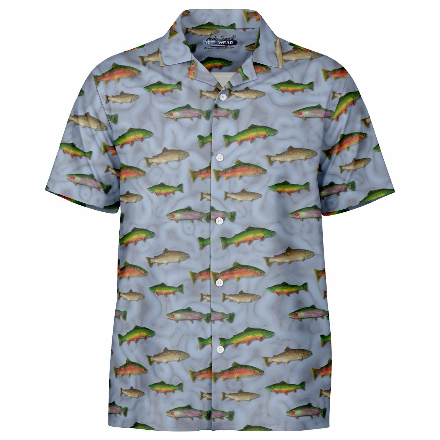 "Trout Grand Slam" light Blue Short Sleeve Button-Down Shirt.