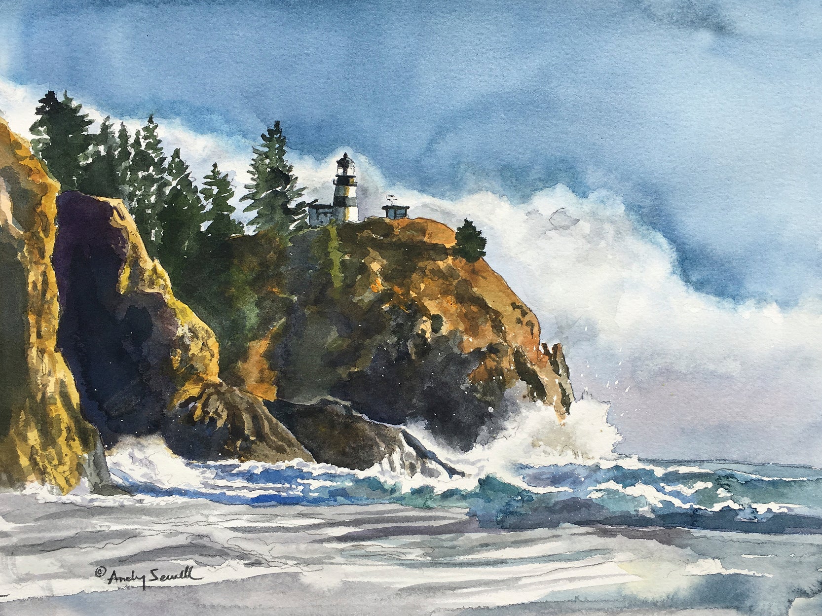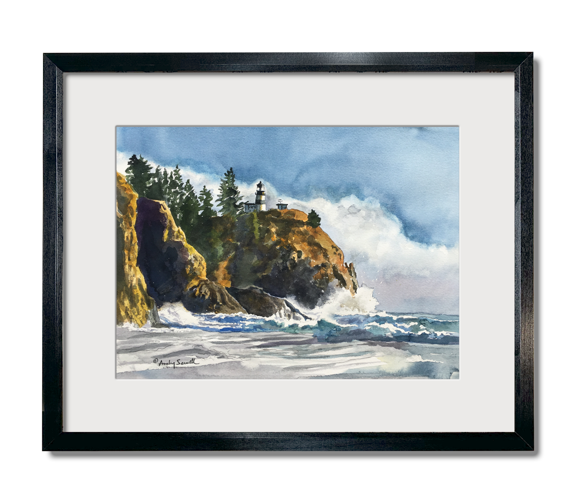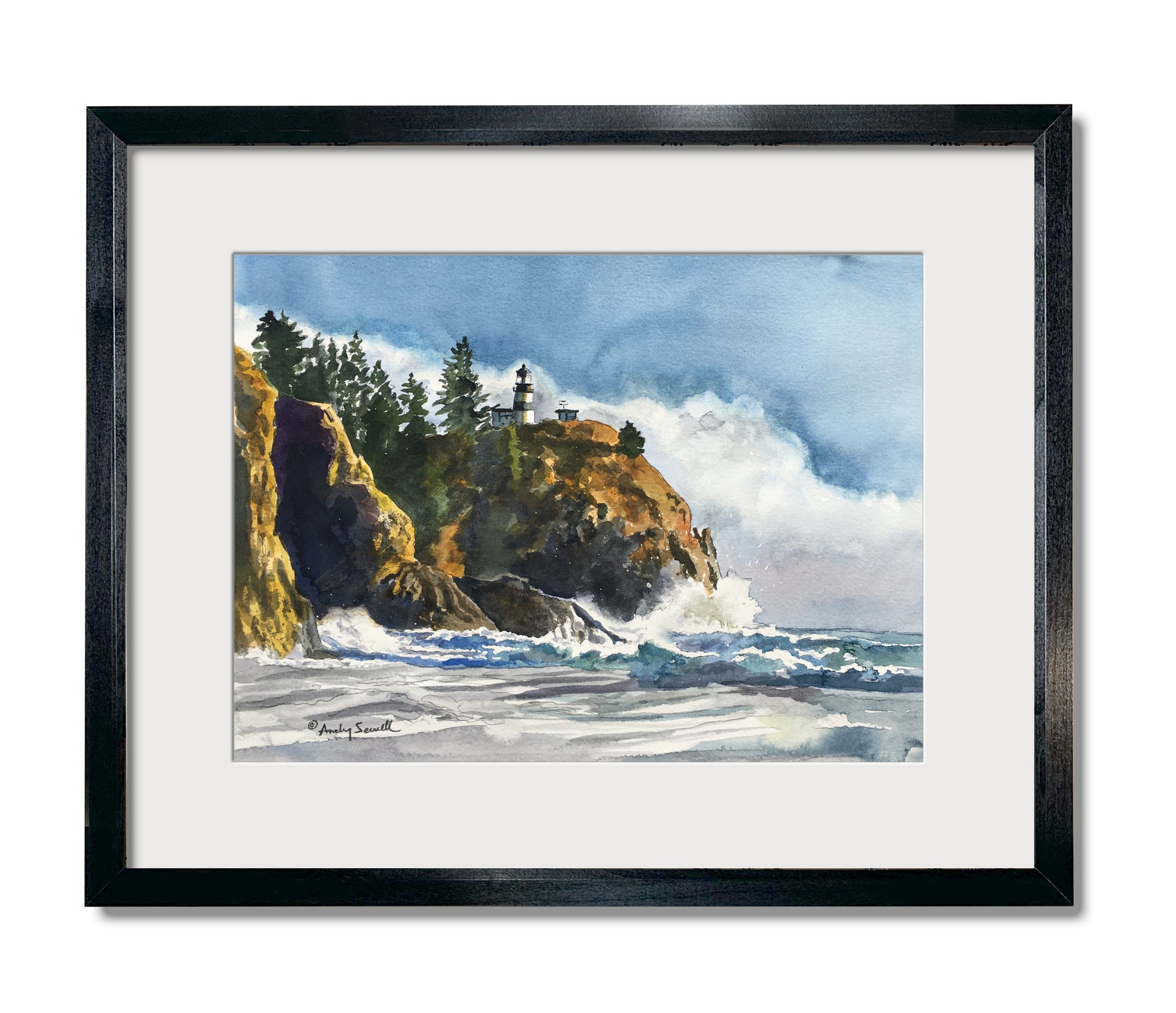 "The Light at Cape Disappointment" Original Watercolor 12x16 or signed edition Giclee Reprod. of the Lighthouse at Cape Disappointment.