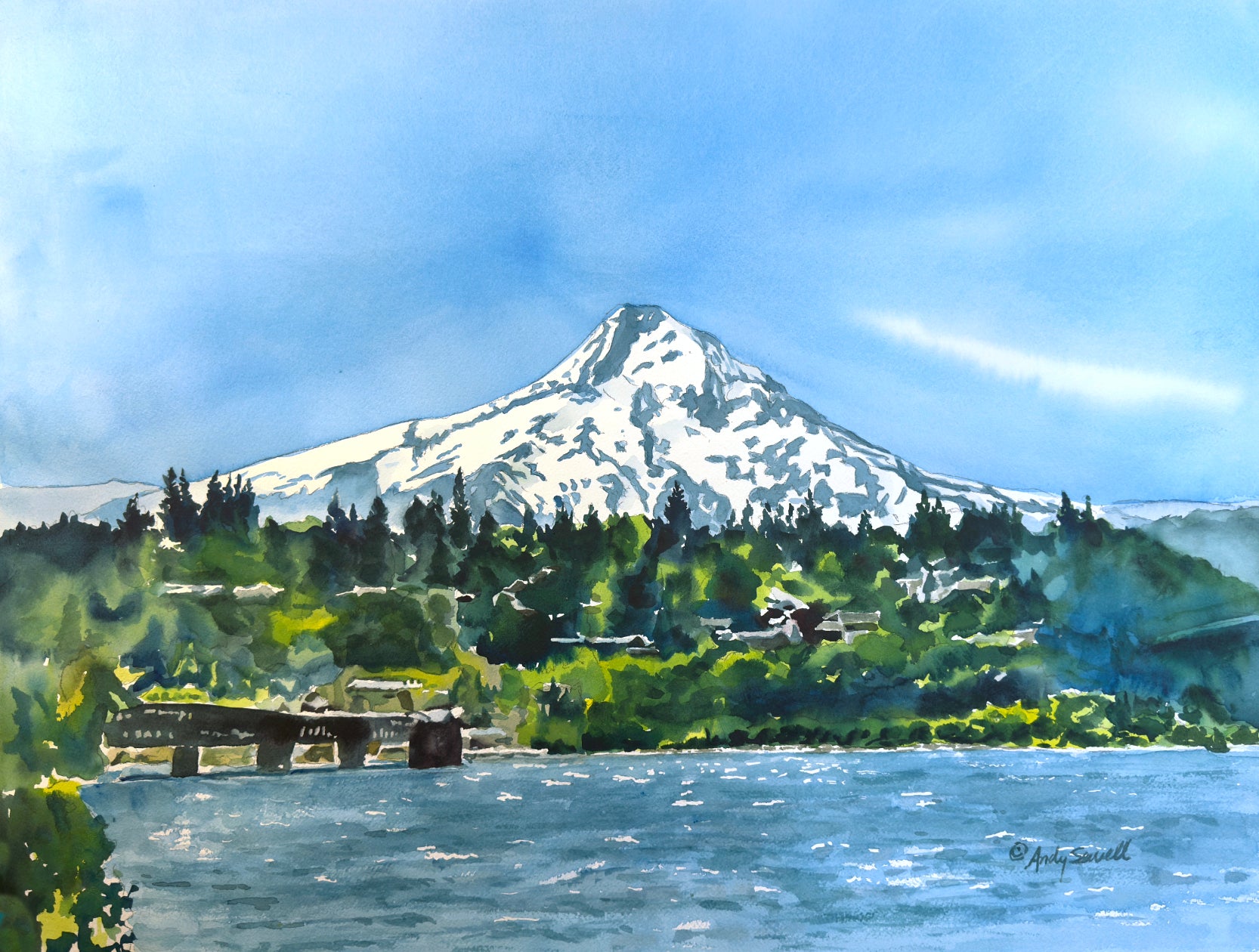"The Mount at Hood River" Original Watercolor or signed ed. Giclee Reprod. of Mt. Hood at Hood River