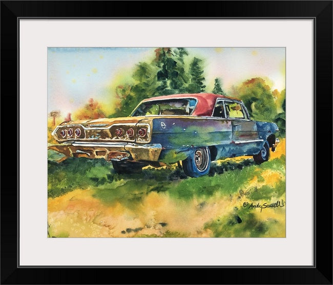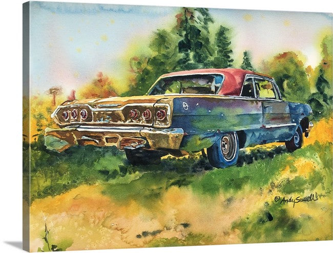Title: "The Old '63 Impala" This is a beautiful signed edition print of my Original watercolor featuring The Old '63 Impala.