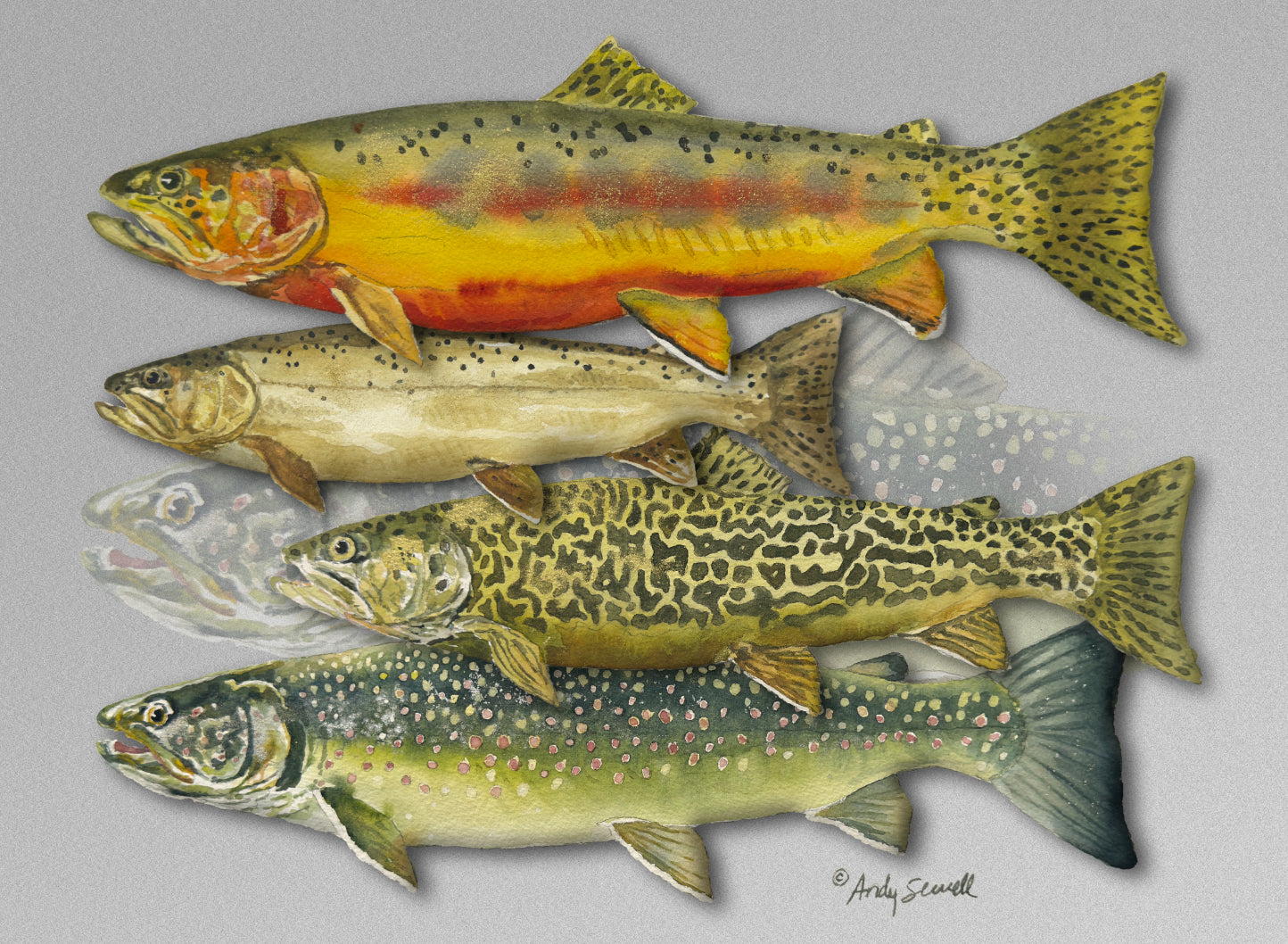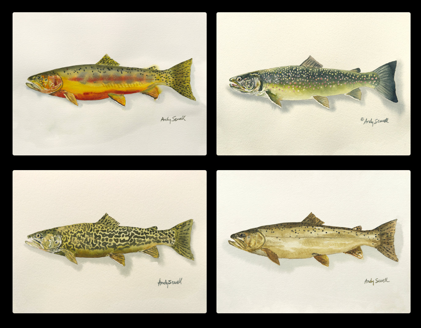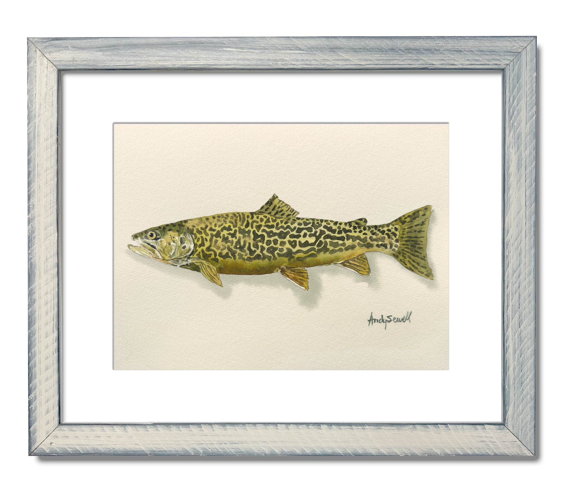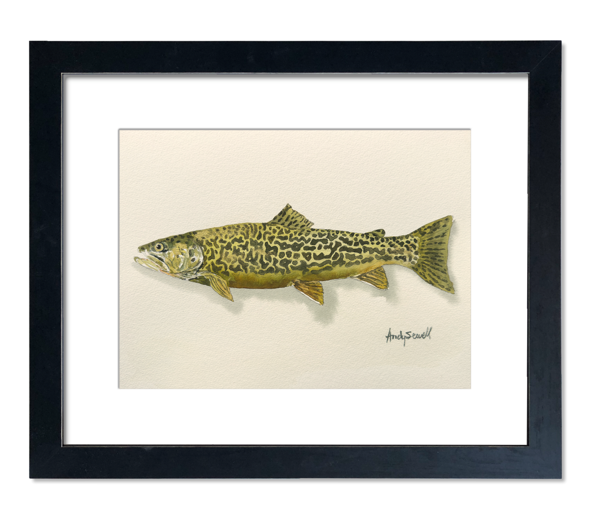 This is a beautiful original watercolor painting of my rendition of a Tiger Trout. also featuring the array of all four of the other less common trout, the Apache, Bull, Tiger and Golden. Each trout can be purchased separately or as the set. Go to the website page for each trout to see more options for a particular trout print