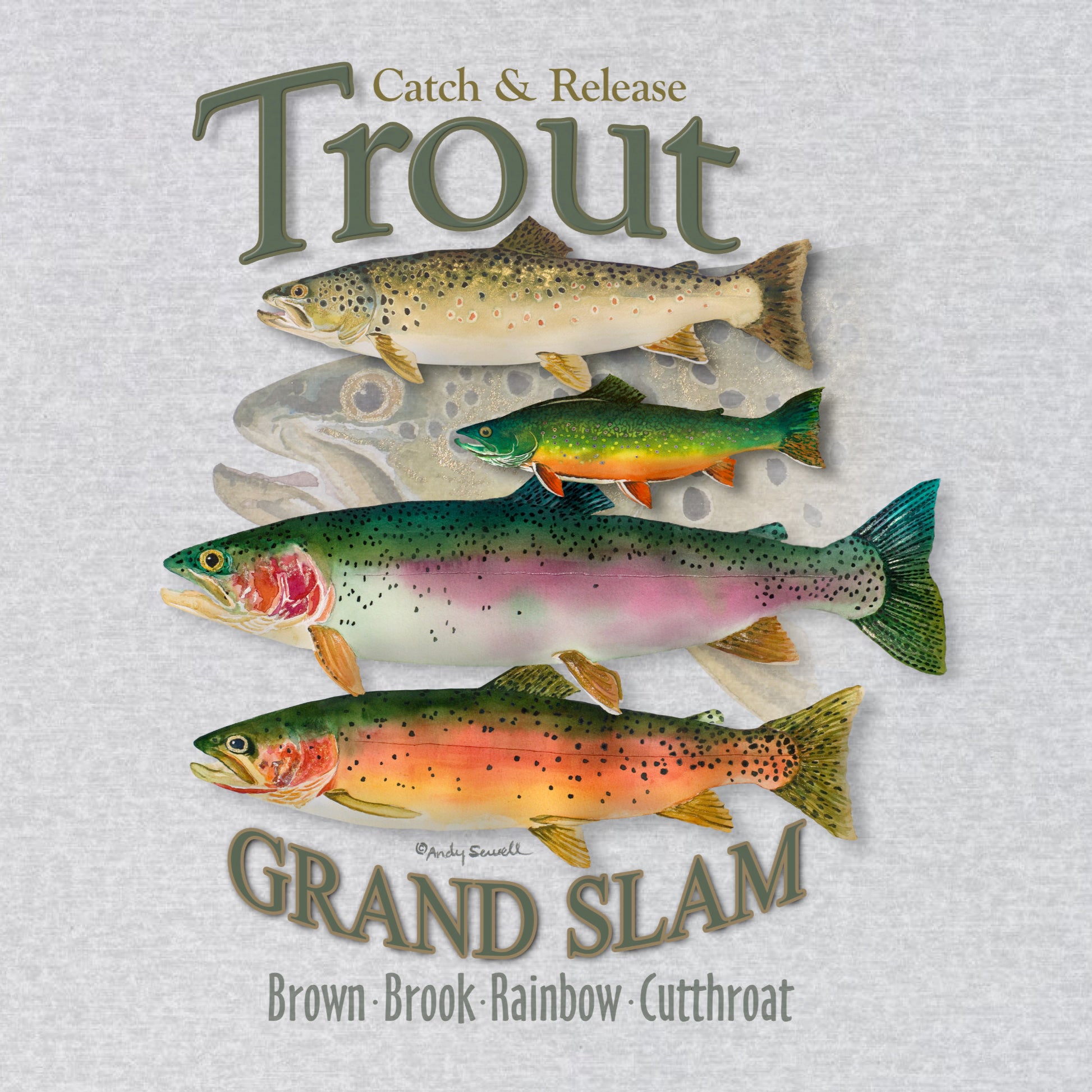 Wear your passion for the trout "Grand Slam" Brown, Brookie, Rainbow and Cutthrout.