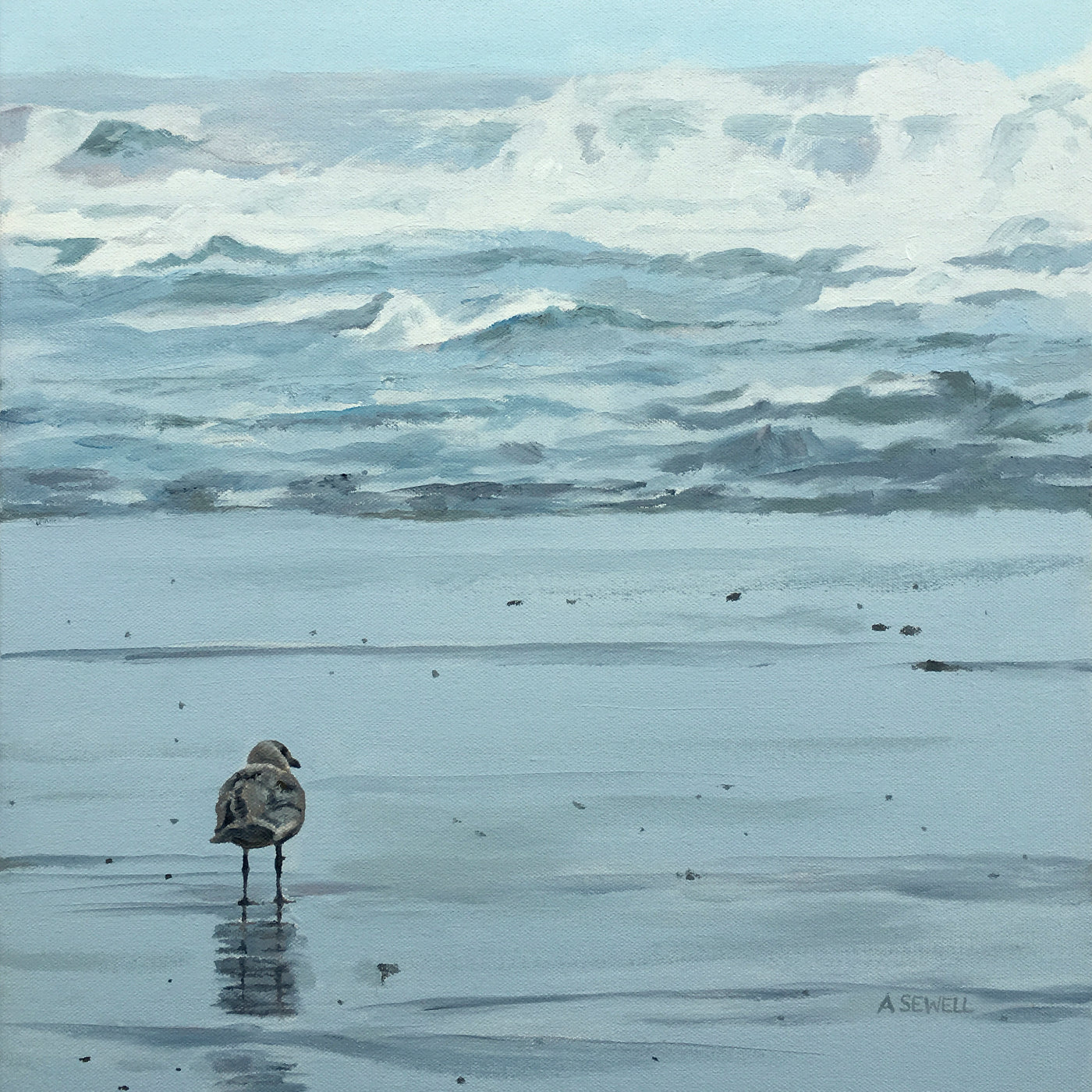 "Watching & Waiting ~ Seagull" - 16"x22" an original oil painting or signed edition Giclee reprod. of a lone seagull on the OR coast.
