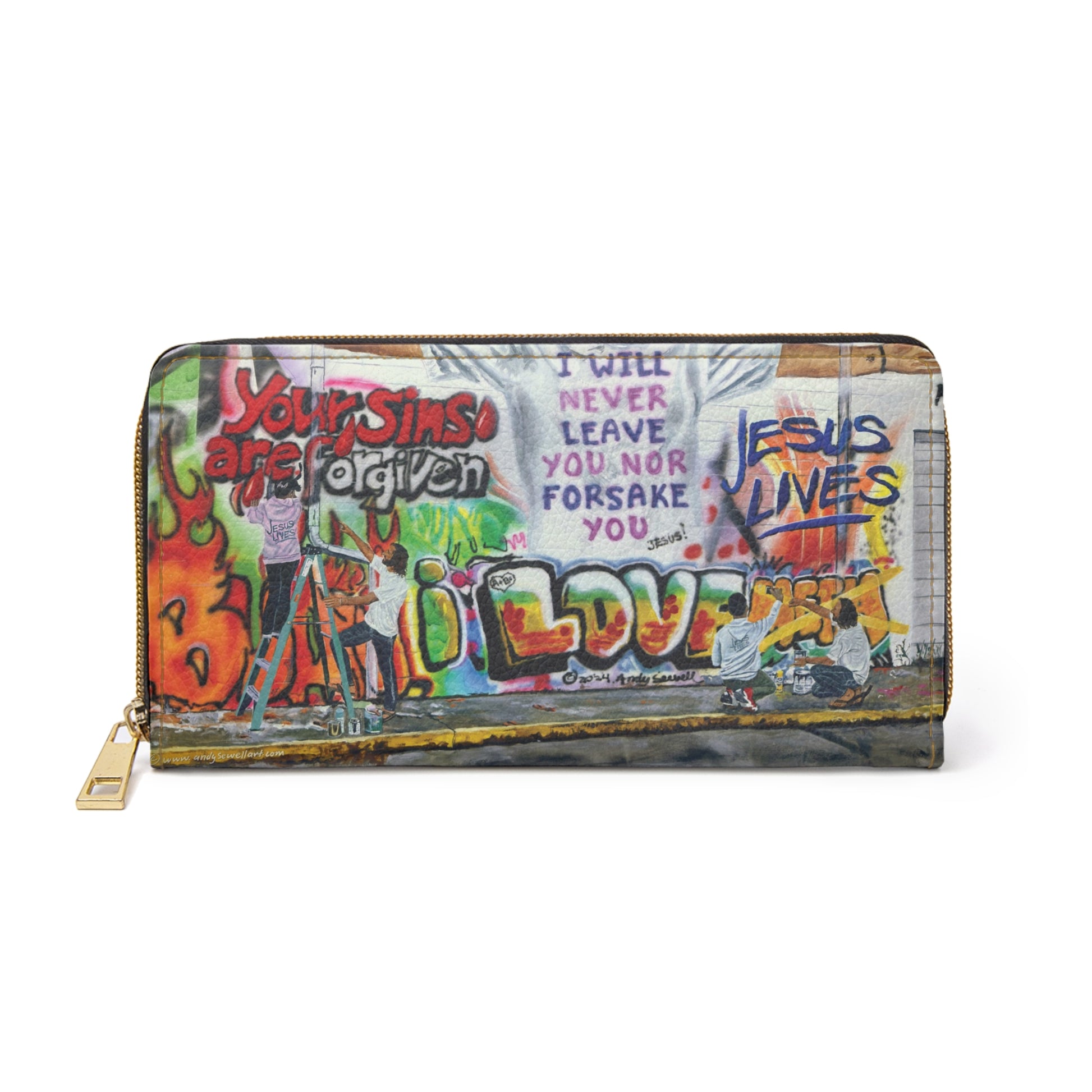 Zipper Wallet with Andy's "Painting Graffiti with Jesus" Design